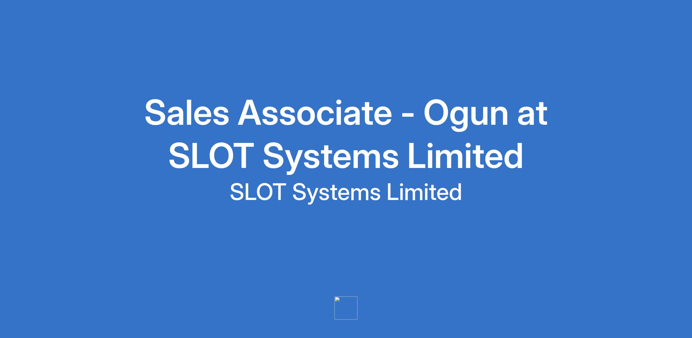 Sales Associate - Ogun at SLOT Systems Limited