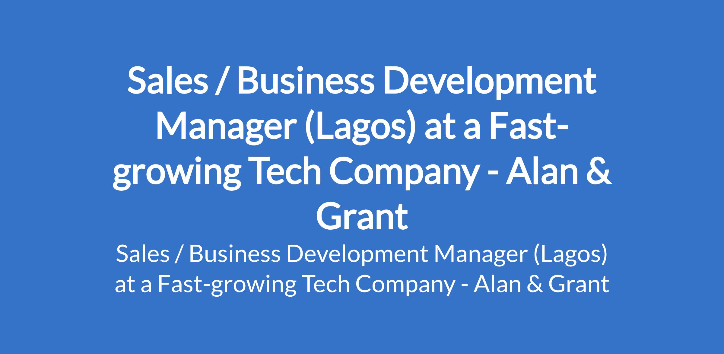 Alan & Grant - Our client, a Fast-growing Tech Company is recruiting to fill the position of: Sales / Business Development Manager. The position is located in Ikoyi, Lagos State. Interested candidates should possess a Bachelors Degree in Business Administration, Marketing, Sales, or related fields with 5 8 years of proven sales experience, with at least 23 years in a managerial or leadership role.
