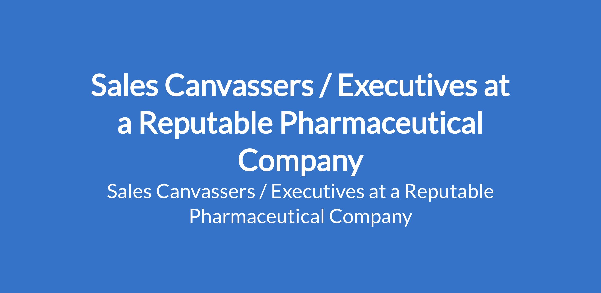 Sales Canvassers / Executives at a Reputable Pharmaceutical Company