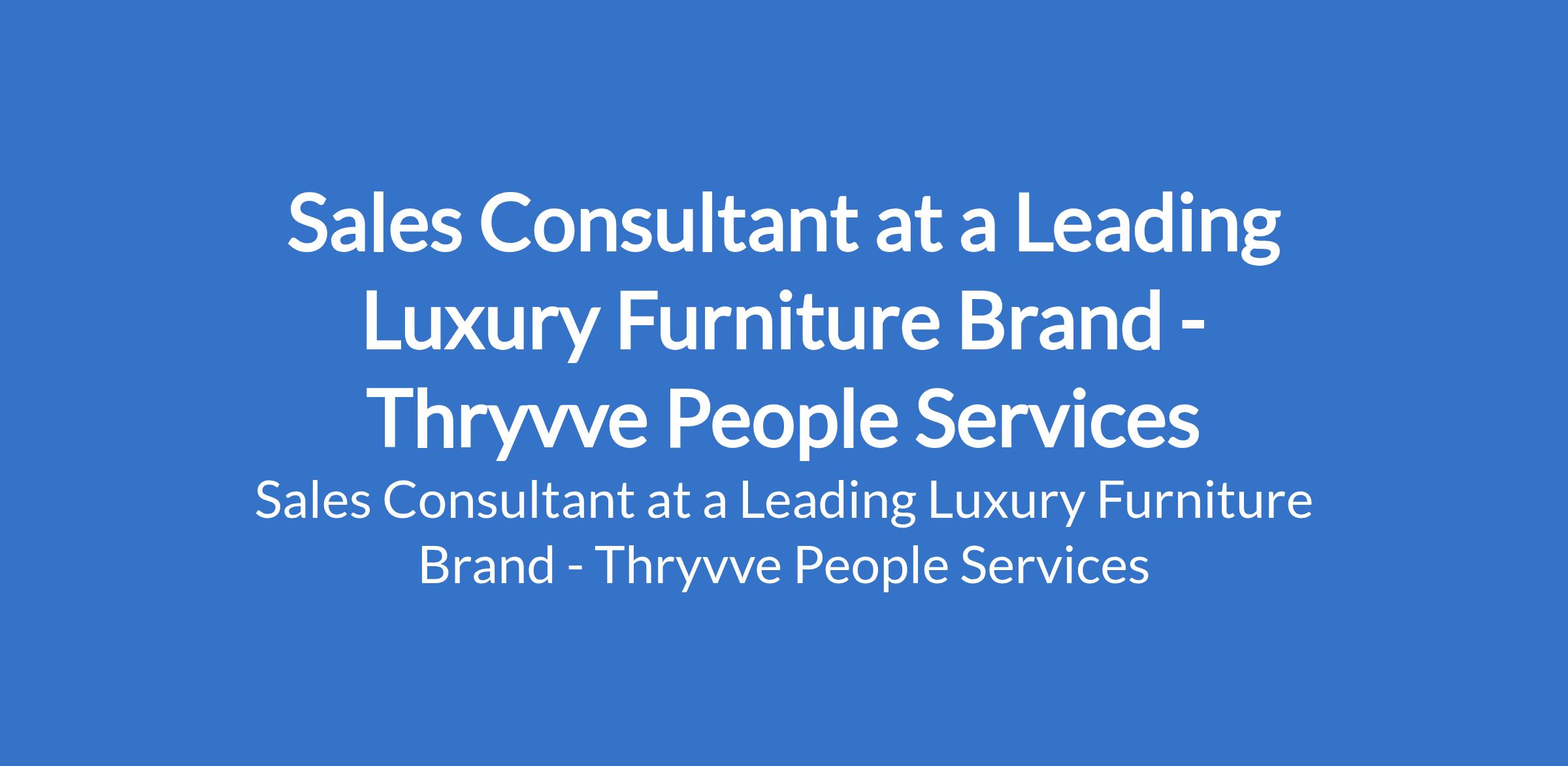 Sales Consultant at a Leading Luxury Furniture Brand - Thryvve People Services