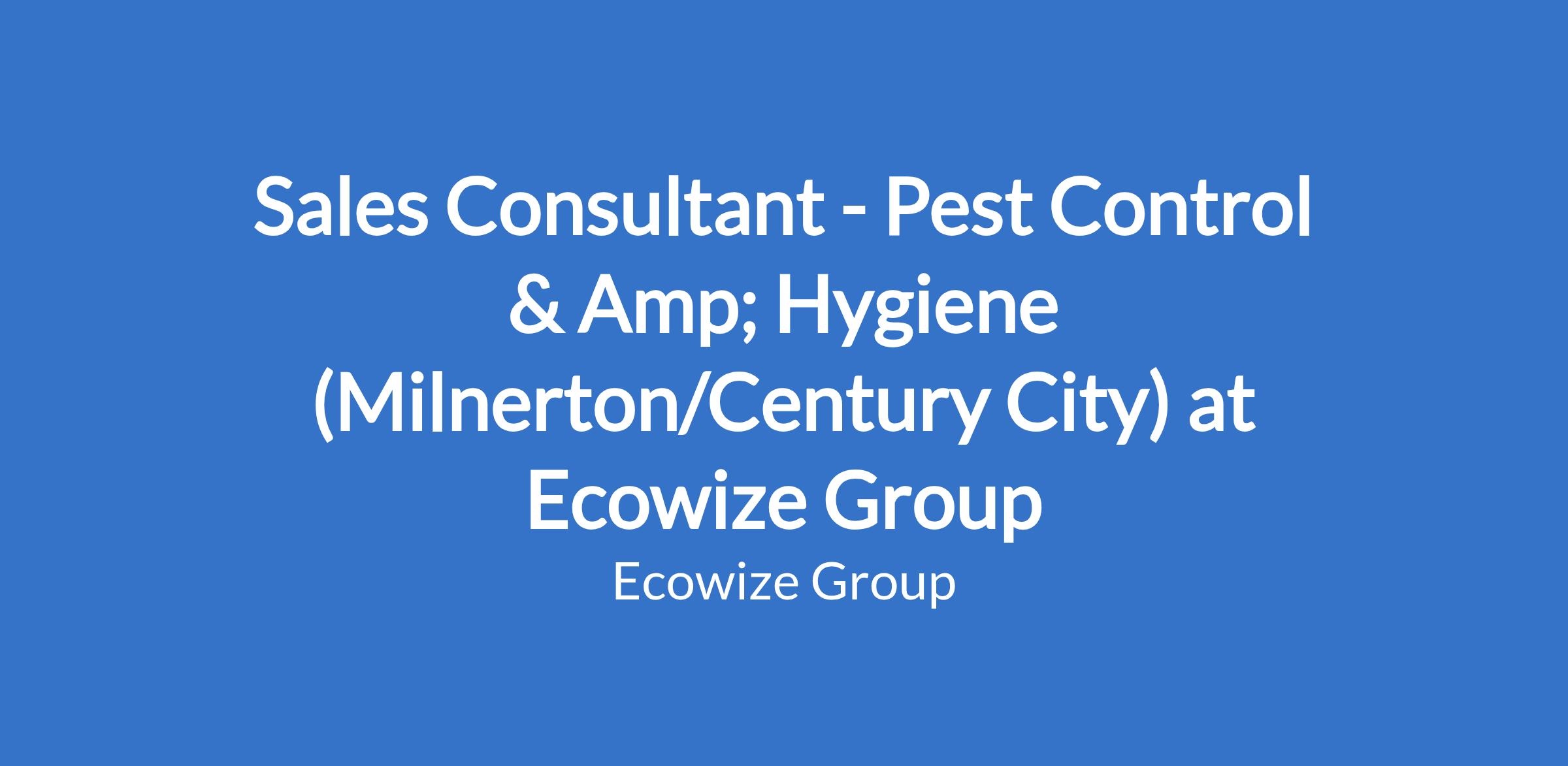 Sales Consultant - Pest Control & Amp; Hygiene (Milnerton/Century City) at Ecowize Group