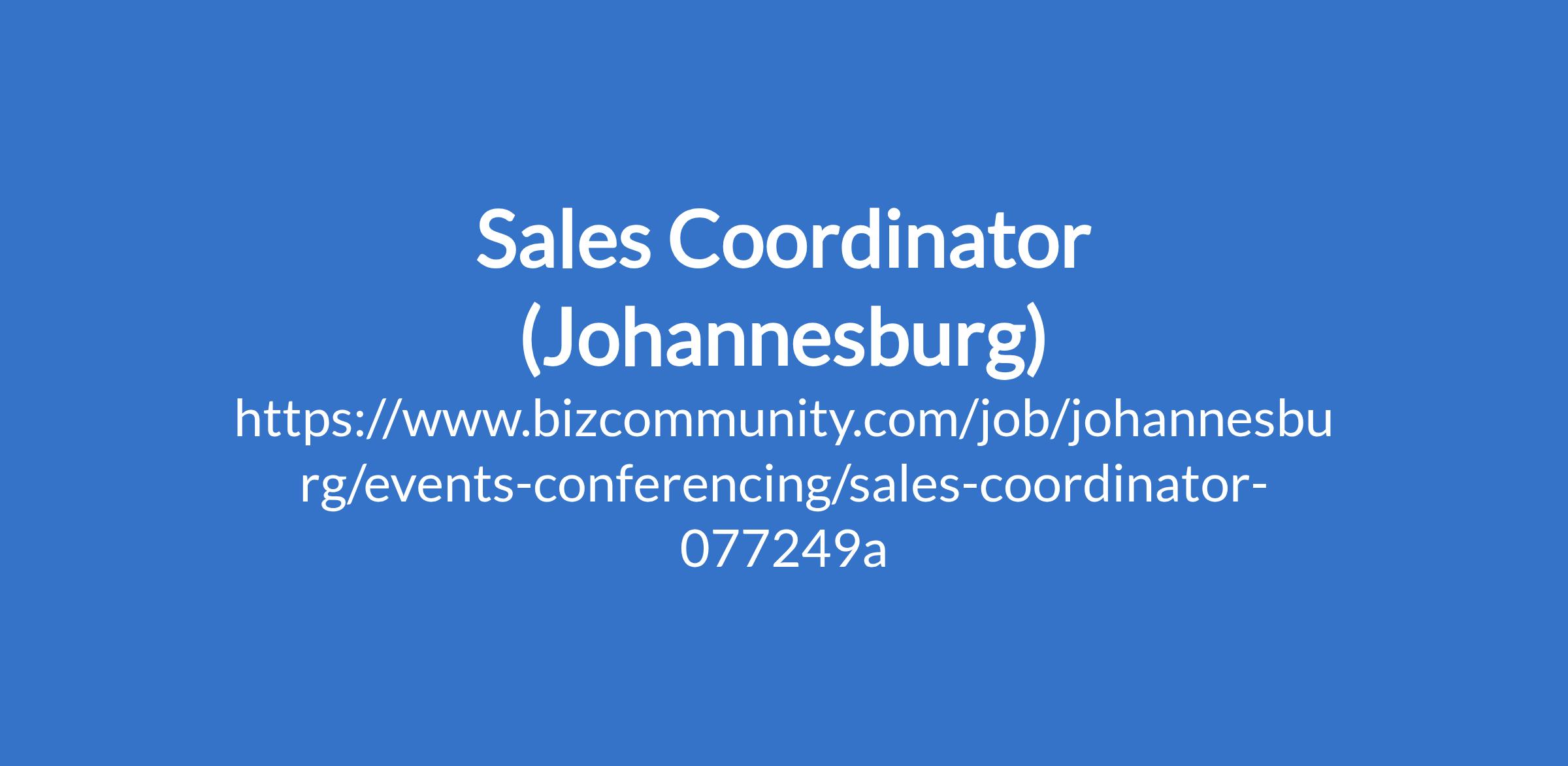 Sales Coordinator (Johannesburg)