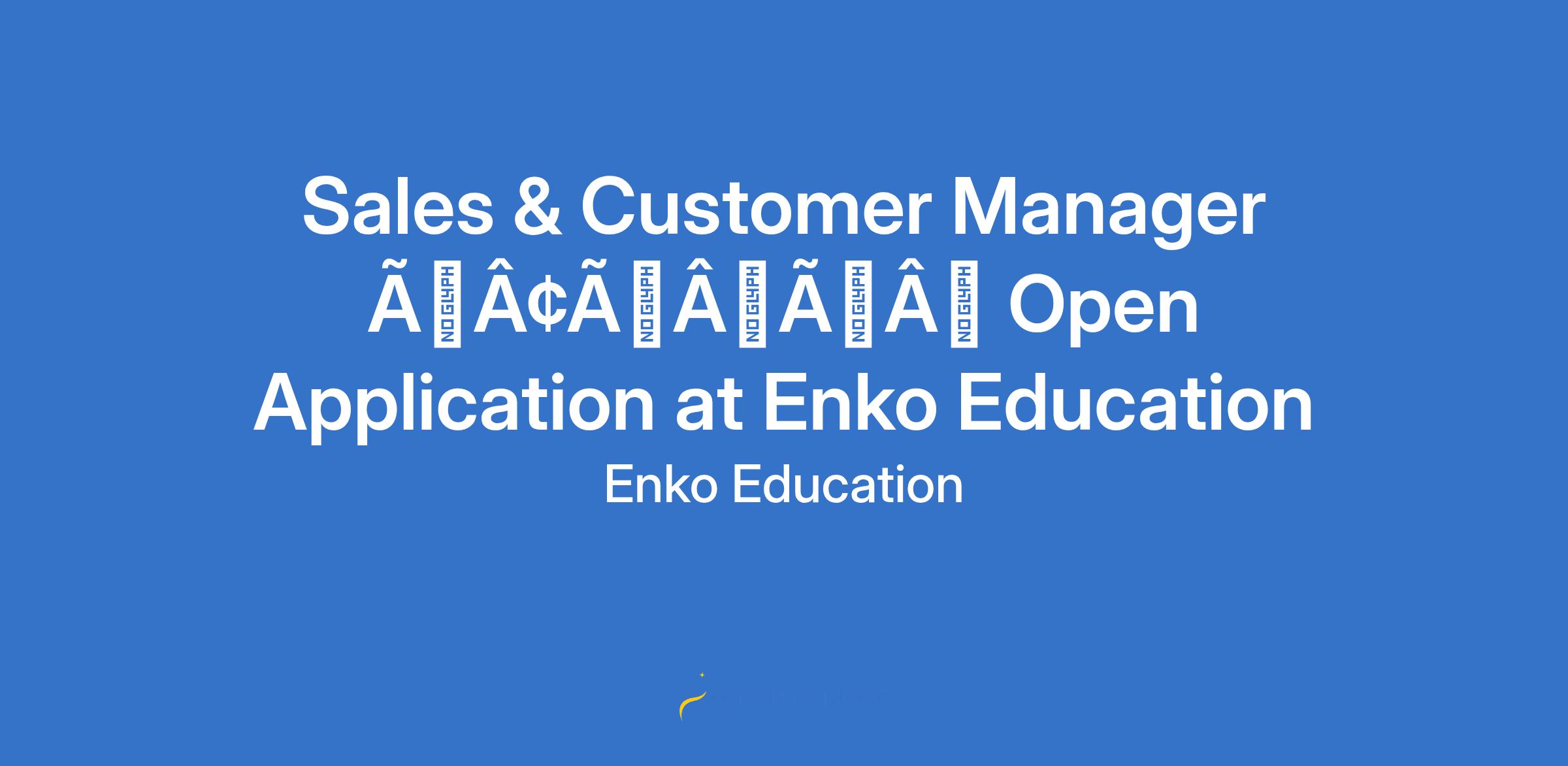 Sales & Customer Manager âÃÂàOpen Application at Enko Education
