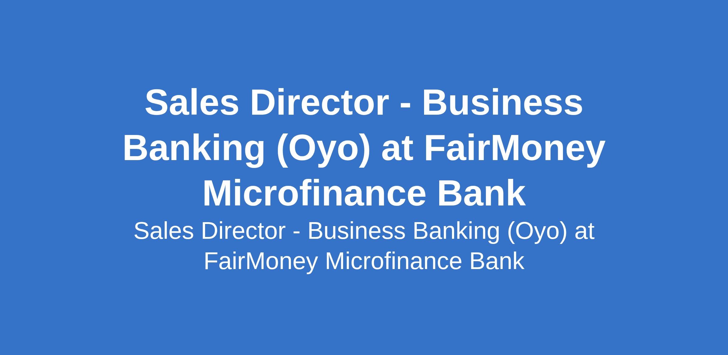 Fairmoney Microfinance Bank is recruiting to fill the position of: Sales Director - Business Banking. The Position is Located in Ibadan, Oyo State. Interested candidates should possess a Bachelors Degree in Finance, Business Administration, Economics, or a related discipline with 10 - 15 years of experience in business/merchant lending, SME banking, or fintech credit, with regional leadership exposure within a commercial bank.