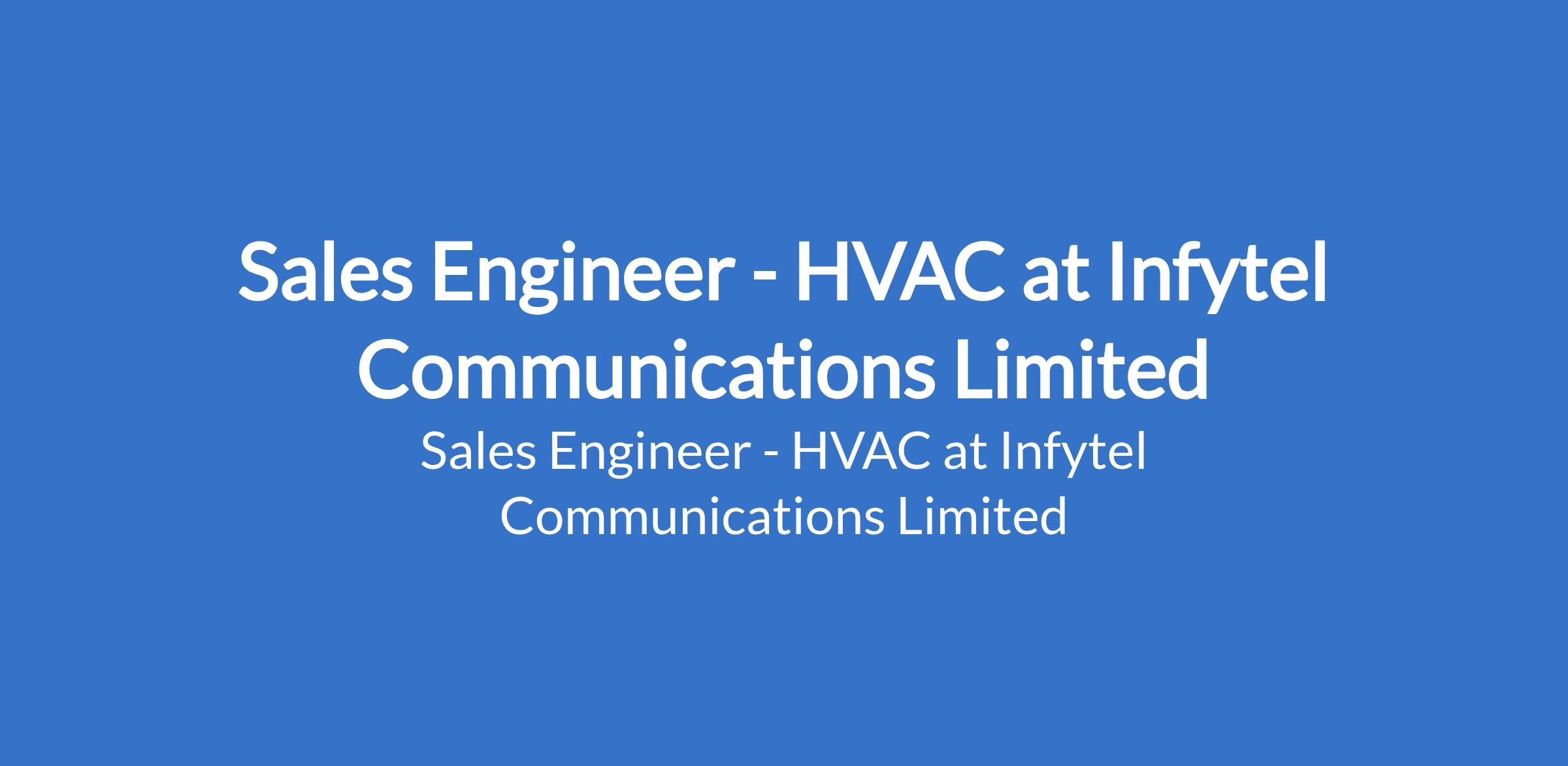 Sales Engineer - HVAC at Infytel Communications Limited