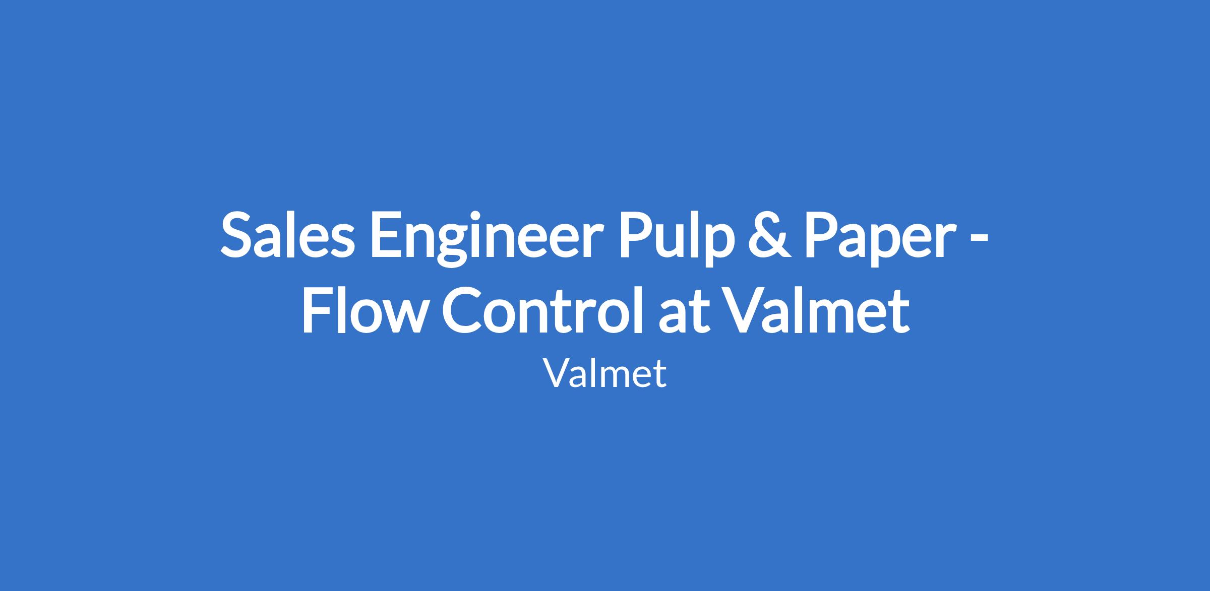 Sales Engineer Pulp & Paper - Flow Control at Valmet