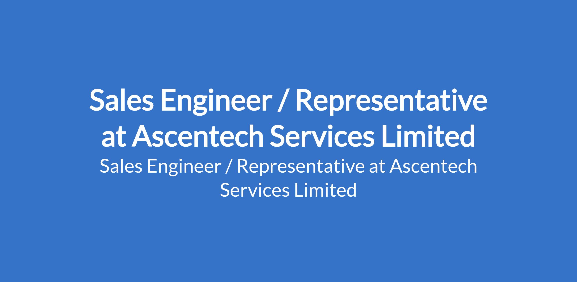 Ascentech Services Limited is recruiting to fill the position of: Sales Engineer / Representative. The position is located in Ogba, Lagos State. Salary: N250,000 - N350,000 monthly. Interested candidates should a possess a Bachelors Degree in Engineering, Business Administration, Marketing, or a related field with a minimum of 3 years of proven sales experience, preferably in power solutions or related products.