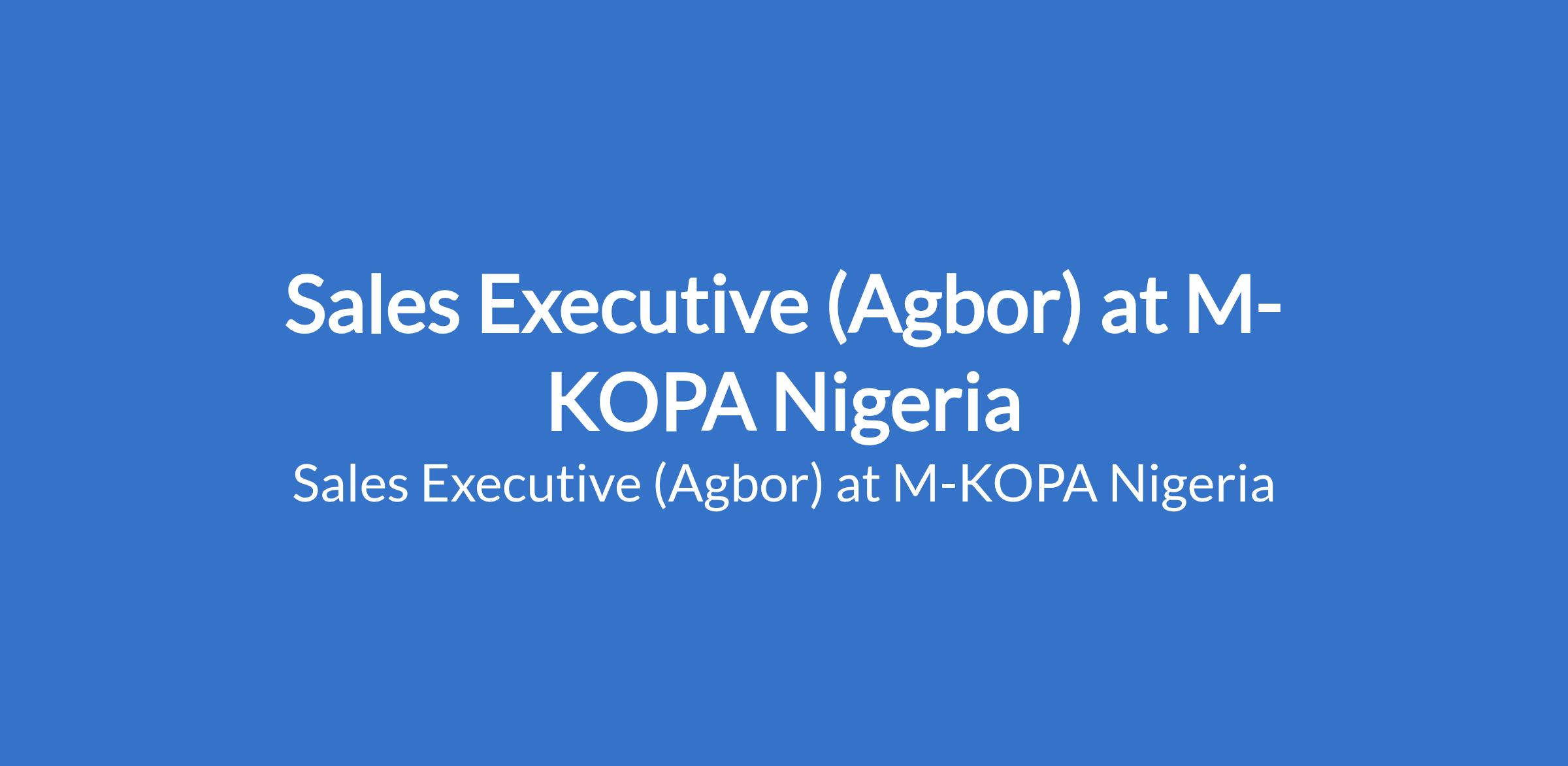 M-KOPA Nigeria is recruiting to fill the position of: Sales Executive. The position is located in Agbor, Delta State. Interested candidates should possess relevant qualifications with experience in Sales within FinTech, Microfinance, Telecommunications, FMCG, or related industries.