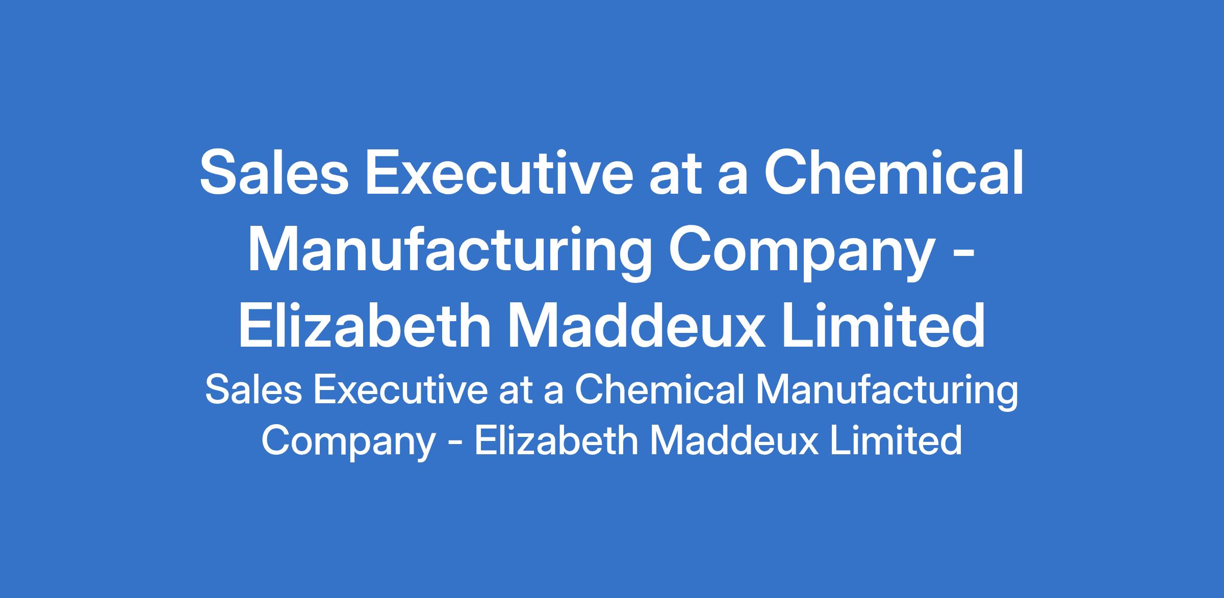 Elizabeth Maddeux Limited - Our client in the chemical manufacturing industry is recruiting to fill the position of: Sales Executive. The position is located in Lagos State. Salary: N200,000 - N250,000 per month. Interested candidates should possess a Bachelors Degree in Chemistry, Chemical Engineering, Industrial Chemistry, Marketing, or related fields with 3- 5 years experience in chemical sales or industrial raw materials sales.
