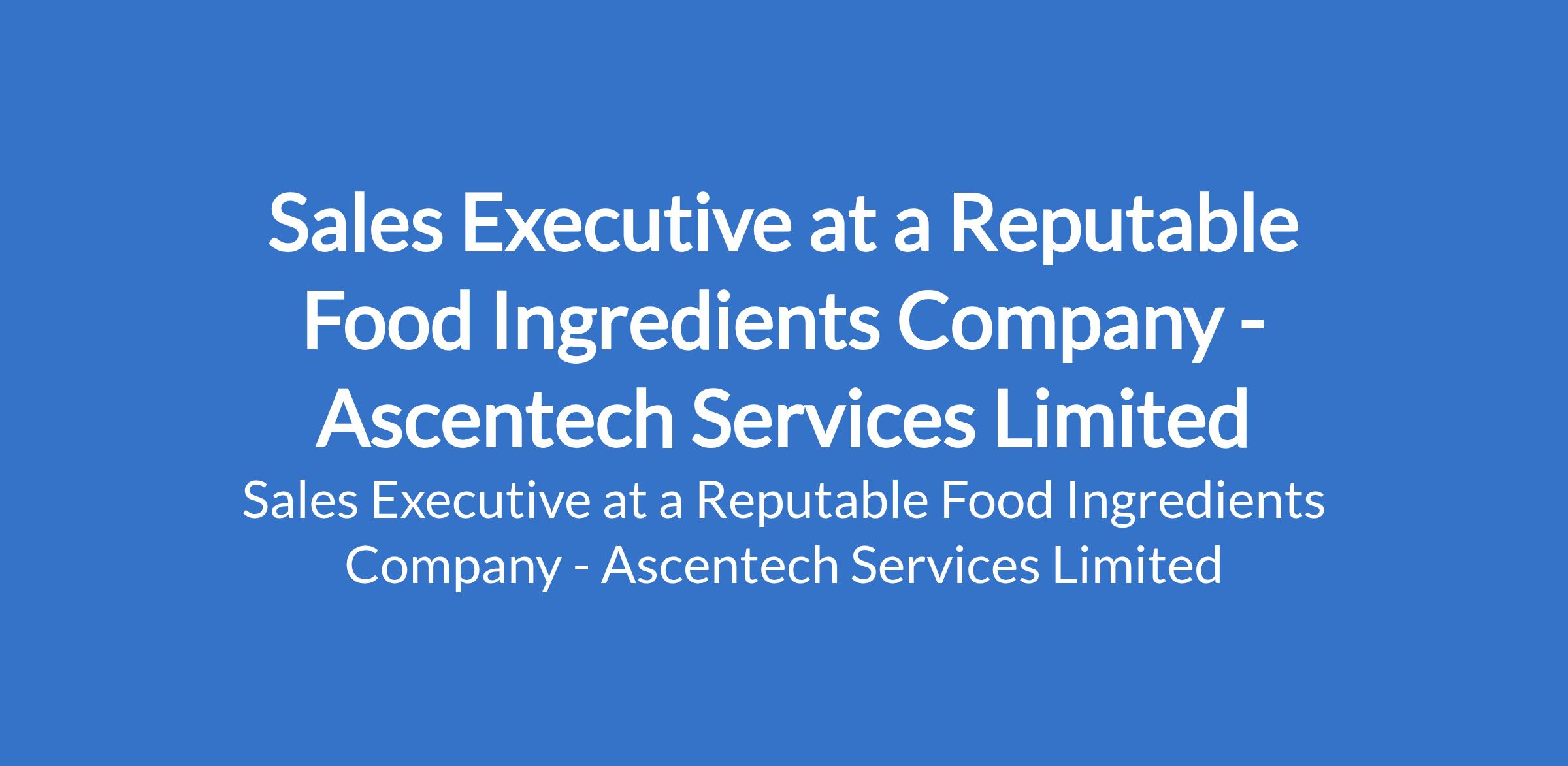 Ascentech Services Limited - Our client, a reputable company in the food ingredients industry is recruiting to fill the position of: Sales Executive. The position is located in Abuja (FCT). Salary: N150,000 - N200,000 monthly. Interested candidates should possess relevant qualifications with 23 years experience in sales (FMCG or food industry preferred).