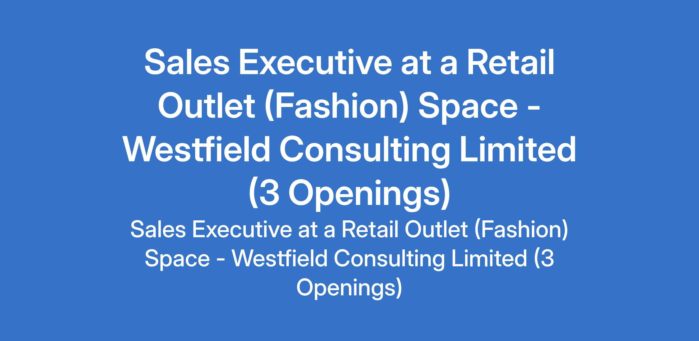 Westfield Consulting Limited - Our client, a Retail Outlet (Fashion) space is recruiting to fill the position of: Sales Executive. The position is located in Abuja (FCT), Lagos and Rivers States. Interested candidates should possess a minimum of a Senior School Leaving Certificate, must have a confident disposition, and be able to treat customers with respect.