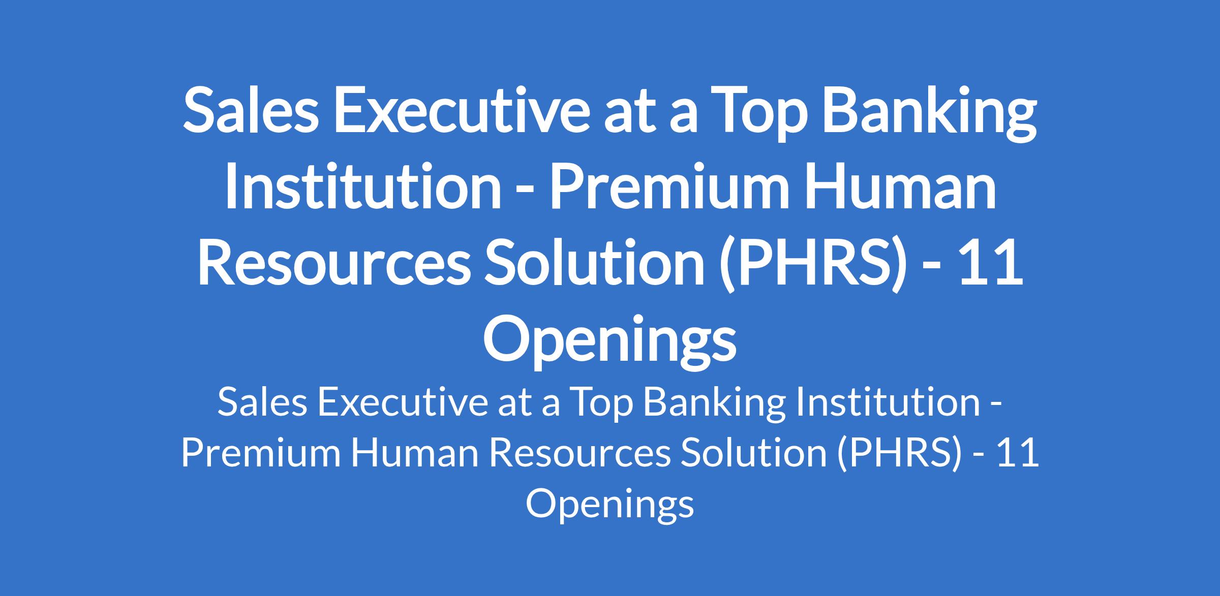 Premium Human Resources Solution (PHRS) - Our client, a Top Banking Institution is recruiting to fill the position of: Sales Executive. The position is located in Abia, Akwa Ibom, Anambra, Bayelsa, Cross River, Delta, Ebonyi, Edo, Enugu, Imo, & Rivers States. Salary: N215,000 / month. Interested candidates should possess an HND / B.Sc, must have upper credits or at least 2.2 with 2 - 5 years of experience is required.