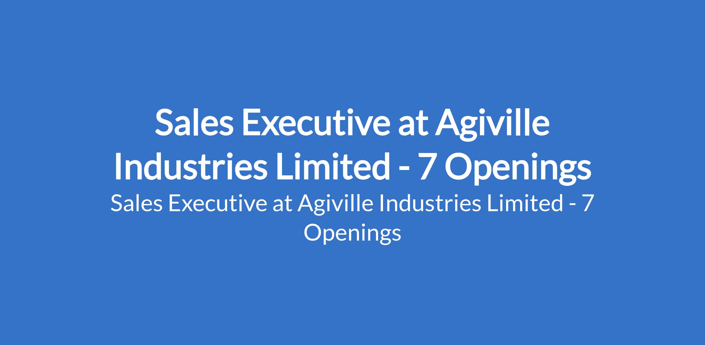 Agiville Industries limited is recruiting to fill the position of: Sales Executive. The position is located in Abuja (FCT), Bauchi, Borno, Enugu, Kano, Plateau, and Rivers States. Salary: N100,000 monthly. Interested candidates should possess relevant qualifications and experience.