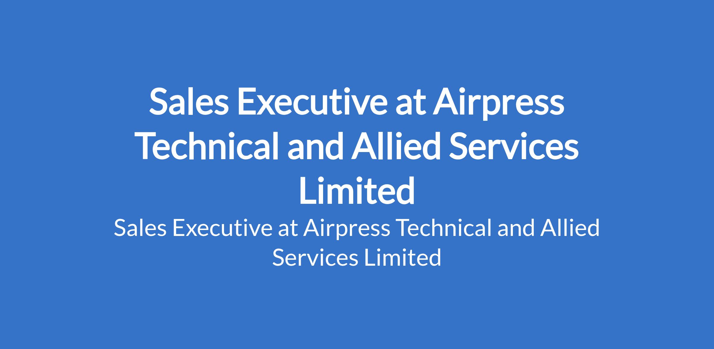 Airpress Technical and Allied Services Limited is recruiting to fill the position of: Sales Executive. The position is located in Lagos State. Interested candidates should possess a Minimum of HND / B.SC Degree in any Science discipline with a Minimum of 2 years' experience in sales of industrial equipment.