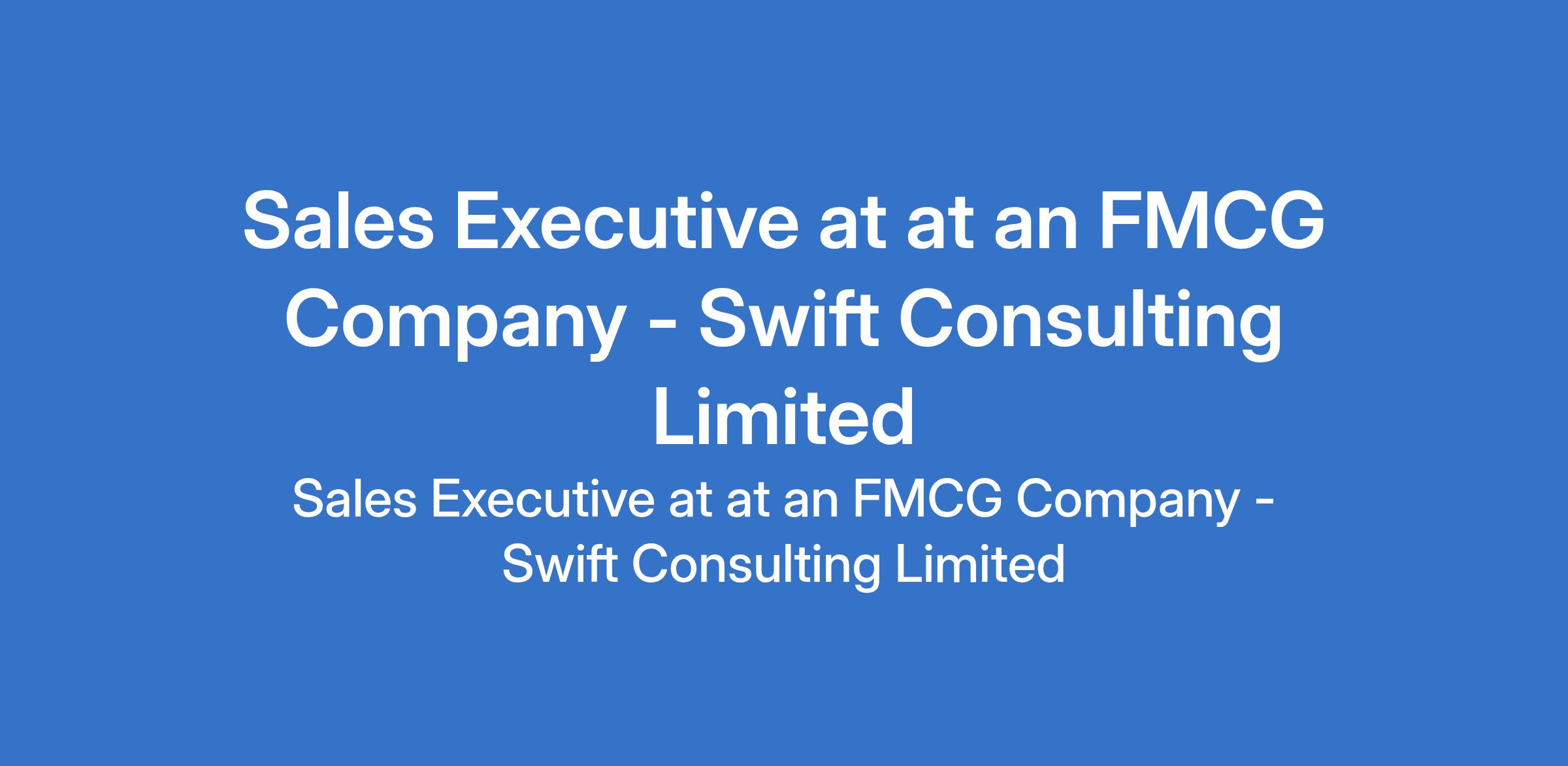 Swift Consulting Limited - Our client in the FMCG sector is recruiting to fill the position of: Sales executive. The position is located in Lagos State. Interested candidates should possess a minimum of OND in Business Administration, Marketing, or related fields with 1 2 years experience in sales, preferably FMCG or retail distribution.