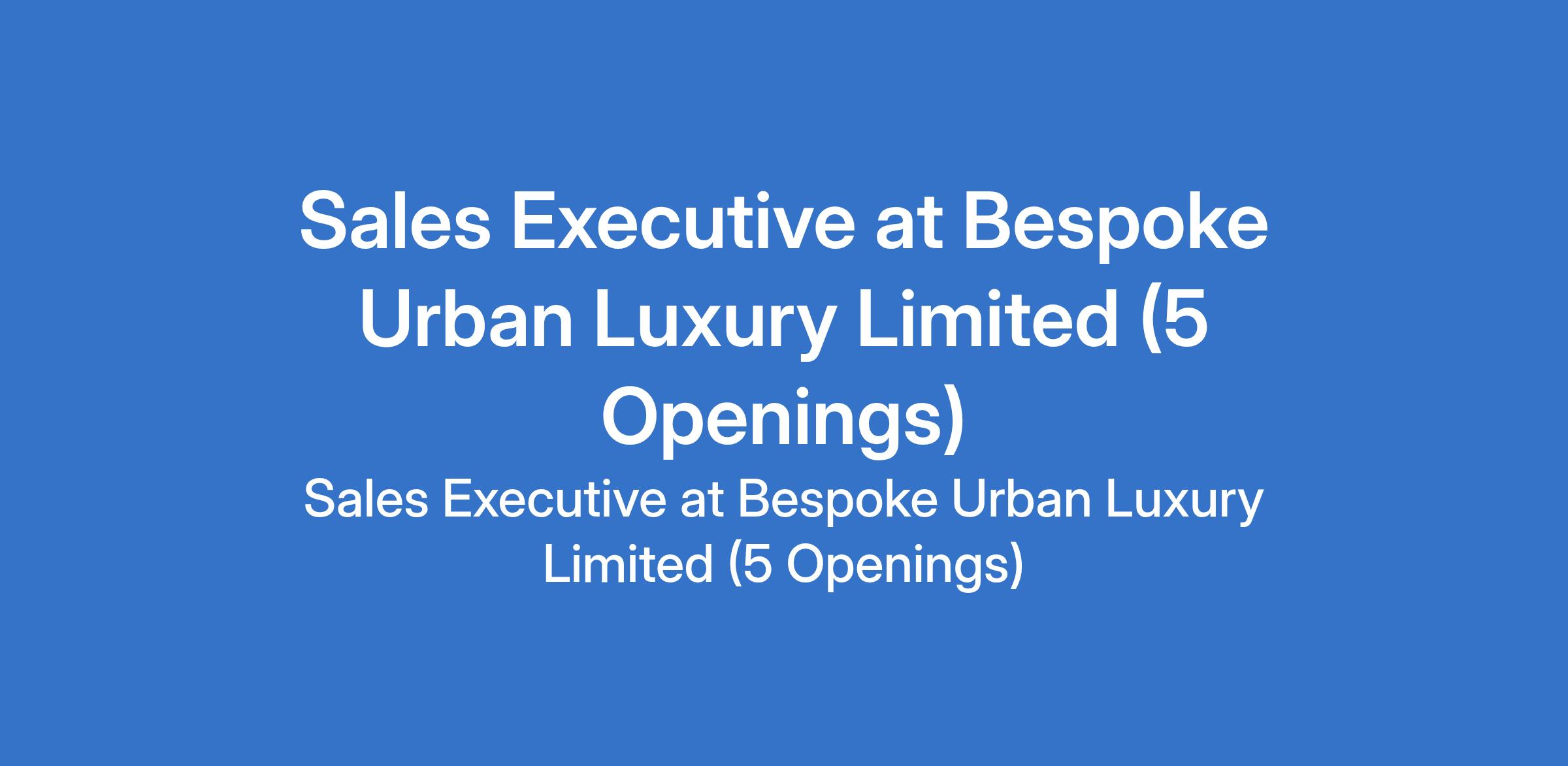 Bespoke Urban Luxury Limited is recruiting to fill the position of: Sales Executive. The position is located in Maitama and Gwagwalada - Abuja (FCT), Ilorin - Kwara, Port Harcourt - Rivers and Ibadan - Oyo States. Salary: N80,000 - N100,000 monthly. Interested candidates should possess minimum of an HND or Bachelors Degree with previous experience in sales or real estate.