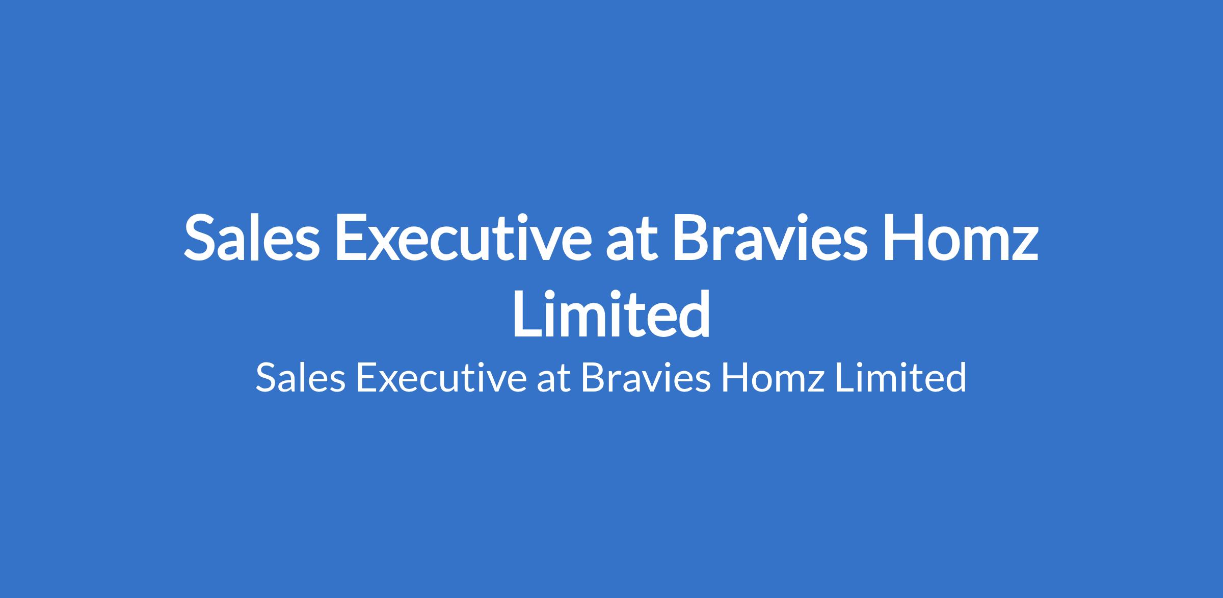 Bravies Homz Limited is recruiting to fill the position of: Sales Executive. The position is located in Garki, Abuja (FCT). Salary: N100,000 - N200,000 / month. Interested candidates should possess a Bachelor Degree, HND, OND qualification with 2 - 3 years of work experience.