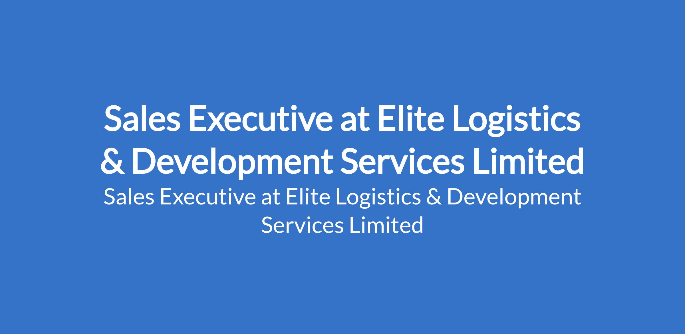 Elite Logistics & Development Services Limited is recruiting to fill the position of: Sales Executive. The position is located in Lagos State. Salary: N120,000 - N180,000 monthly. Interested candidates should possess a High School Degree with 3-6 years experience.