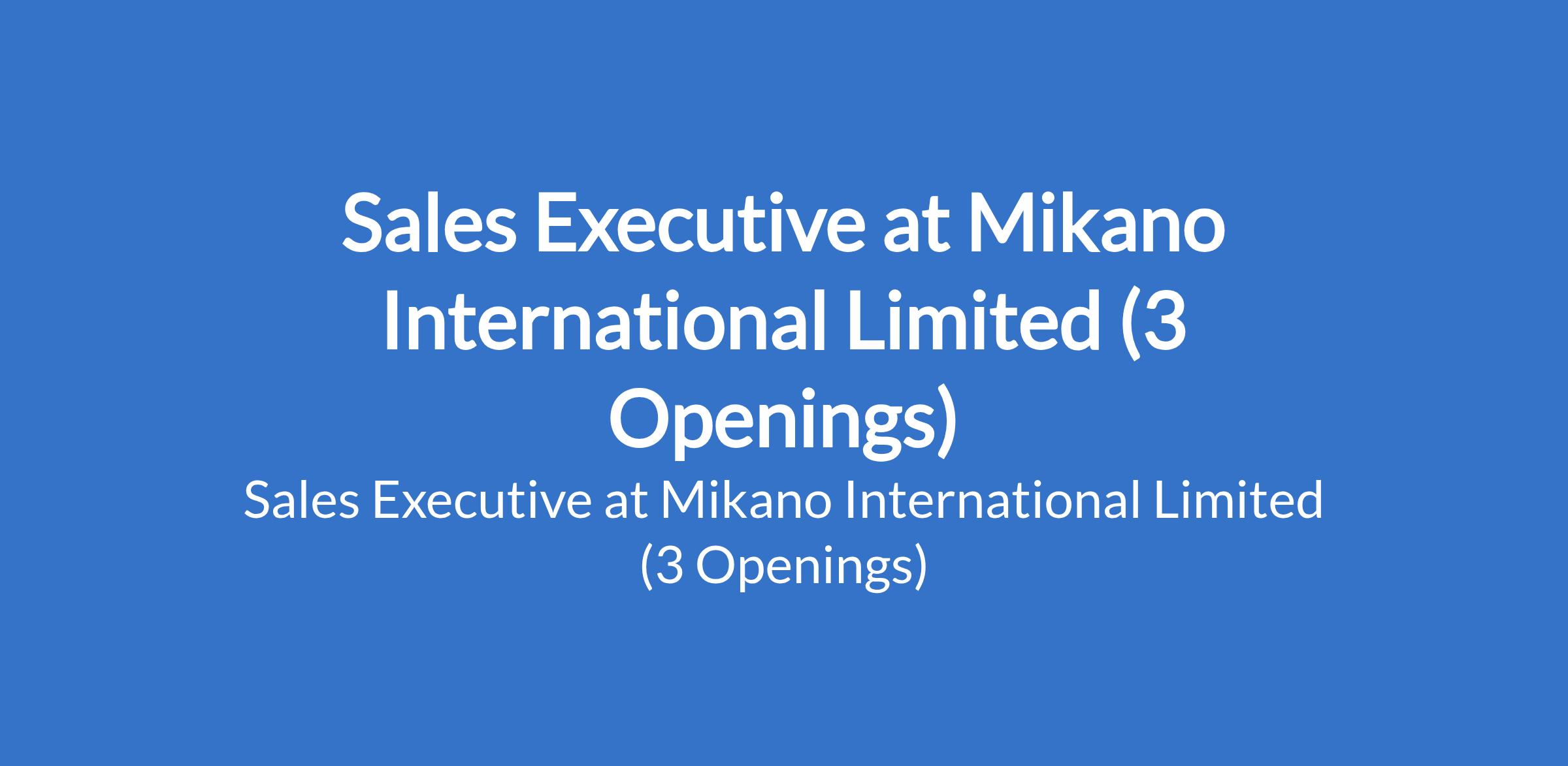 Mikano International Limited is recruiting to fill the position of: Sales Executive. The position is located in Kano, Lagos, and Ibadan - Oyo States. Salary: N275,000 - N350,000.00 / monthly. Interested candidates should possess a BSc/HND in Marketing, Economics, Business and Management, or other related fields with a minimum of 1 year of experience within the industry as a salesperson.