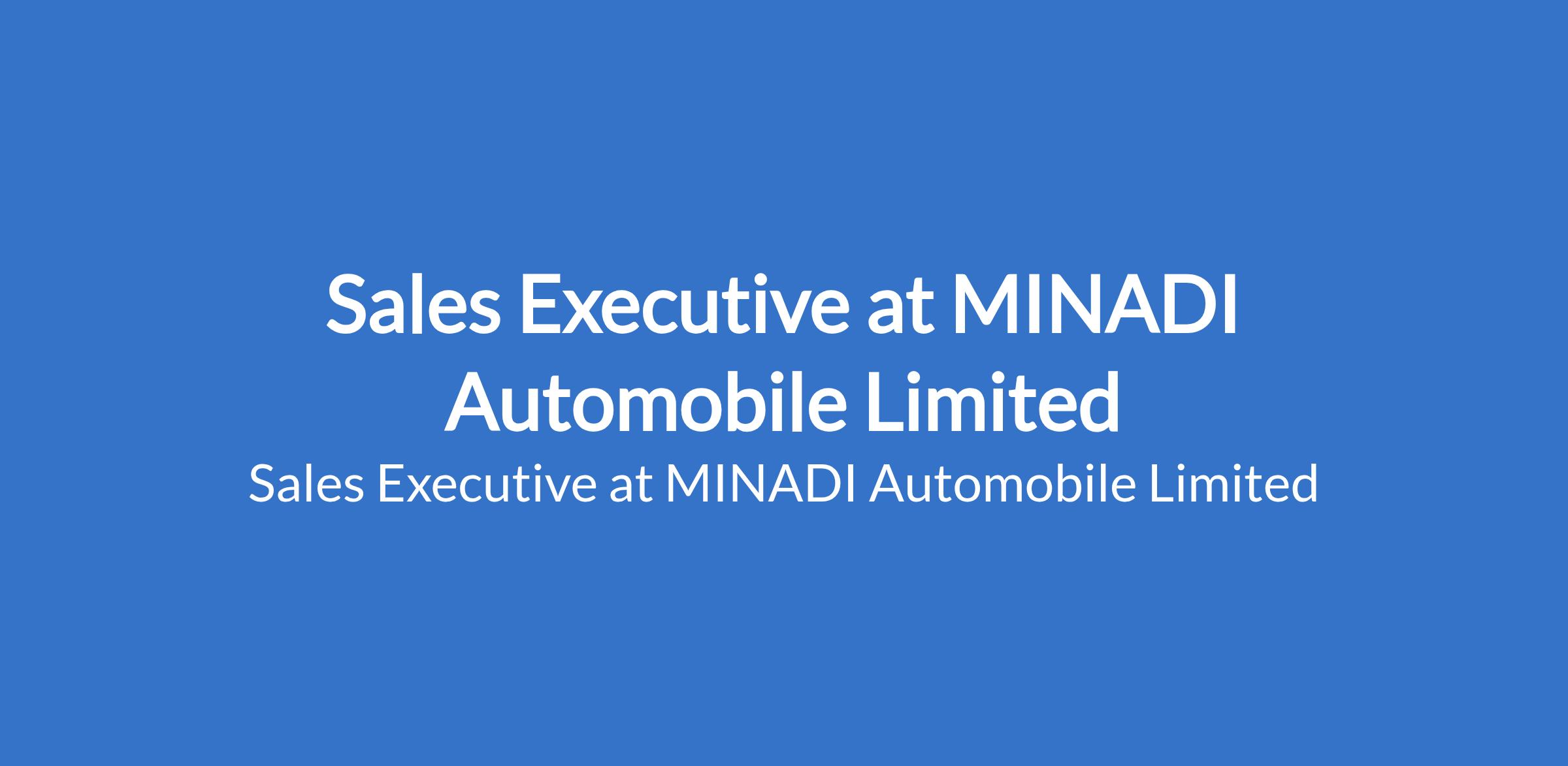 MINADI Automobile Limited is recruiting to fill the position of: Sales Executive. The position is located in Victoria Island, Lagos State. Salary: N250,000 - N400,000 monthly. Interested candidates should possess an HND / Bachelors Degree in Marketing, Business Administration, or related field with a minimum of 5 years of automobile sales experience.
