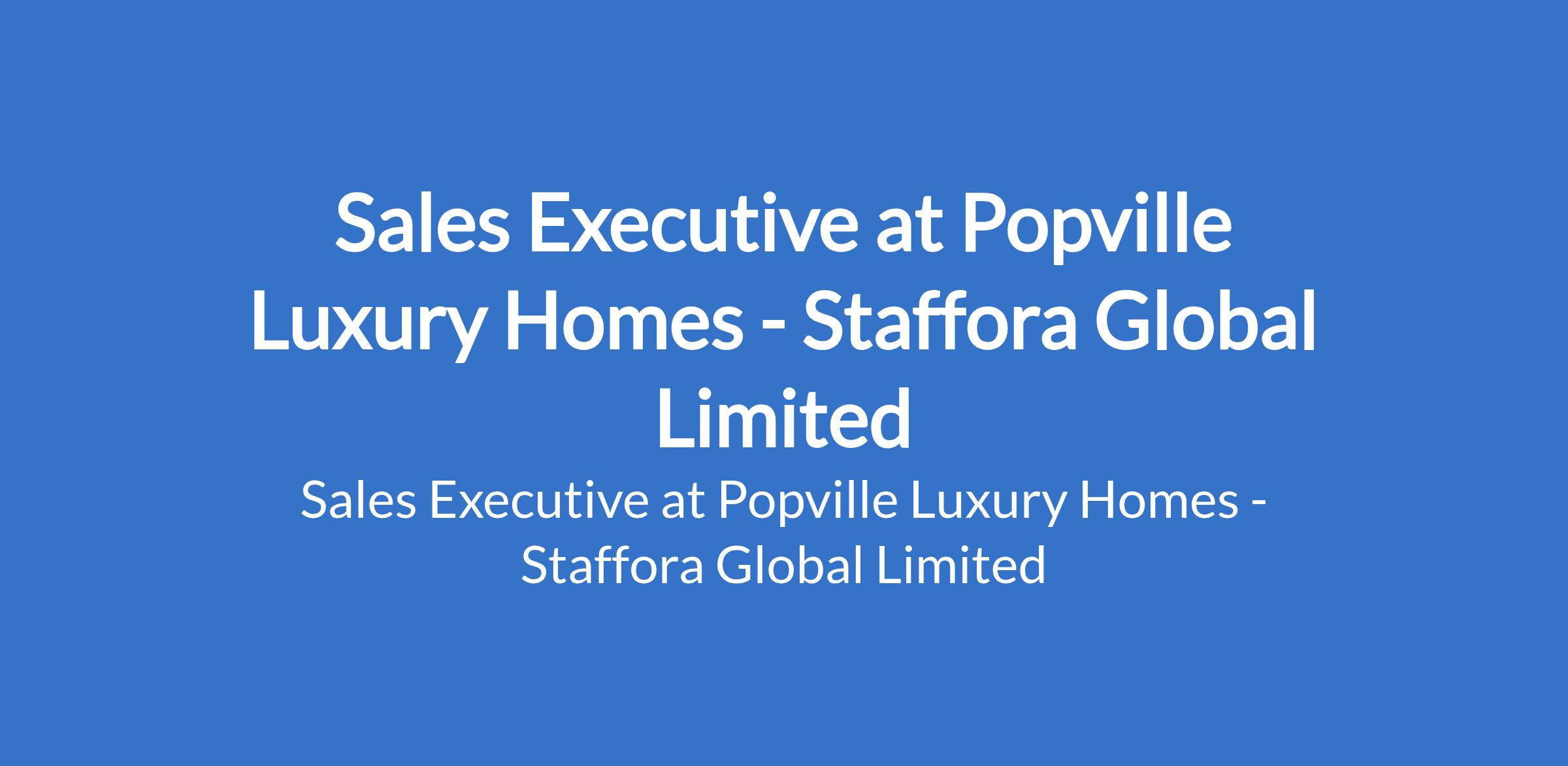 Staffora Global Limited - Our client, Popville Luxury Homes is recruiting to fill the position of: Sales Executive. The position is located in Wuse 2, Abuja (FCT). Salary: N250,000 - N350,000 monthly. Interested candidates should possess relevant qualifications with a minimum of 4 years trackable sales experience, preferably in real estate or luxury products.