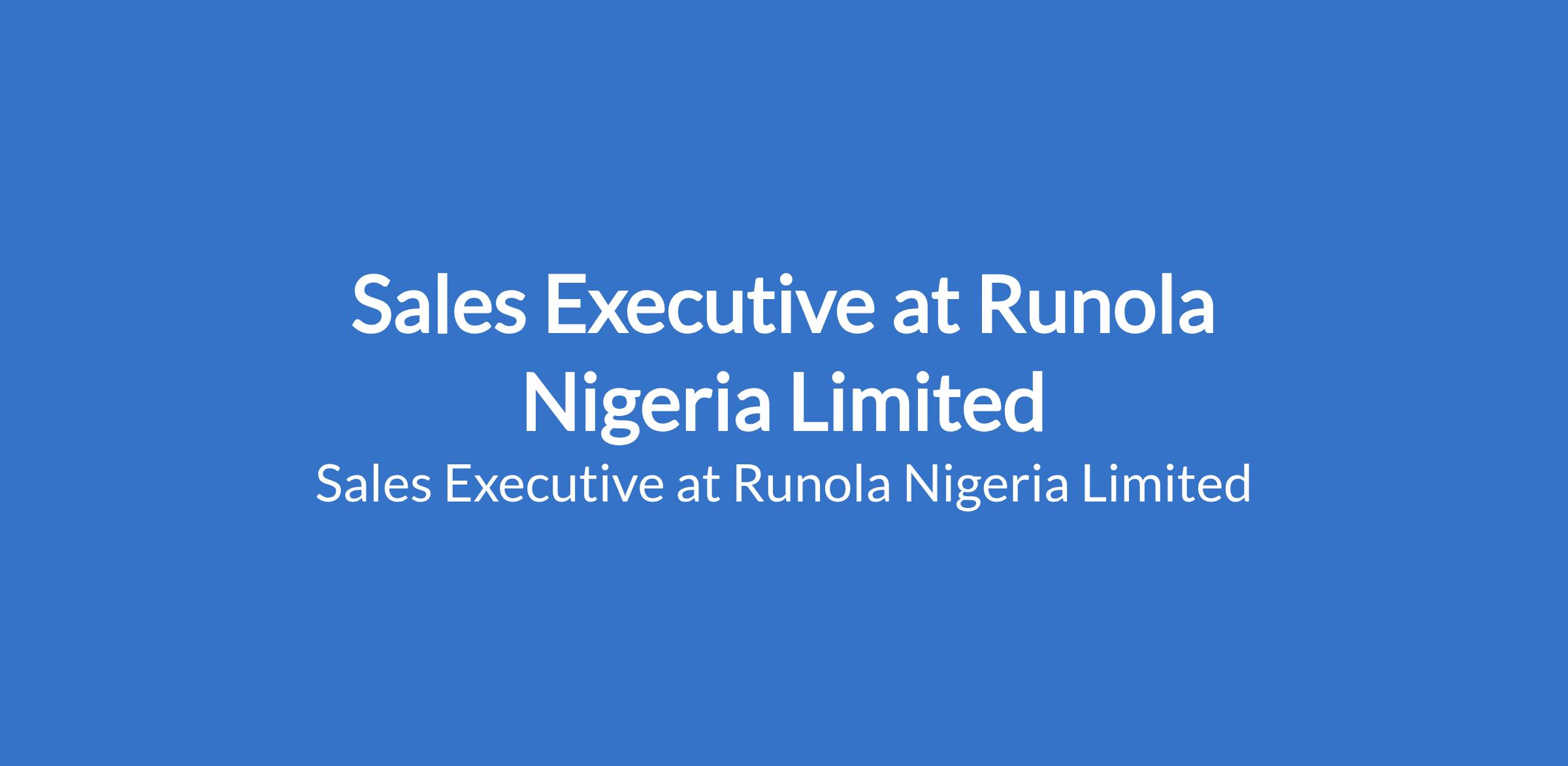 Runola Nigeria Limited is recruiting to fill the position of: Sales Executive. The position is located in Asaba, Delta State. Salary N350,000 N500,000 monthly. Interested candidates should possess an HND/B.Sc. in Animal Science, Animal Production, Agriculture, or a related field with 5 years hands-on sales experience, preferably in poultry feeds or agricultural products. Valid drivers license and willingness to travel for field sales.