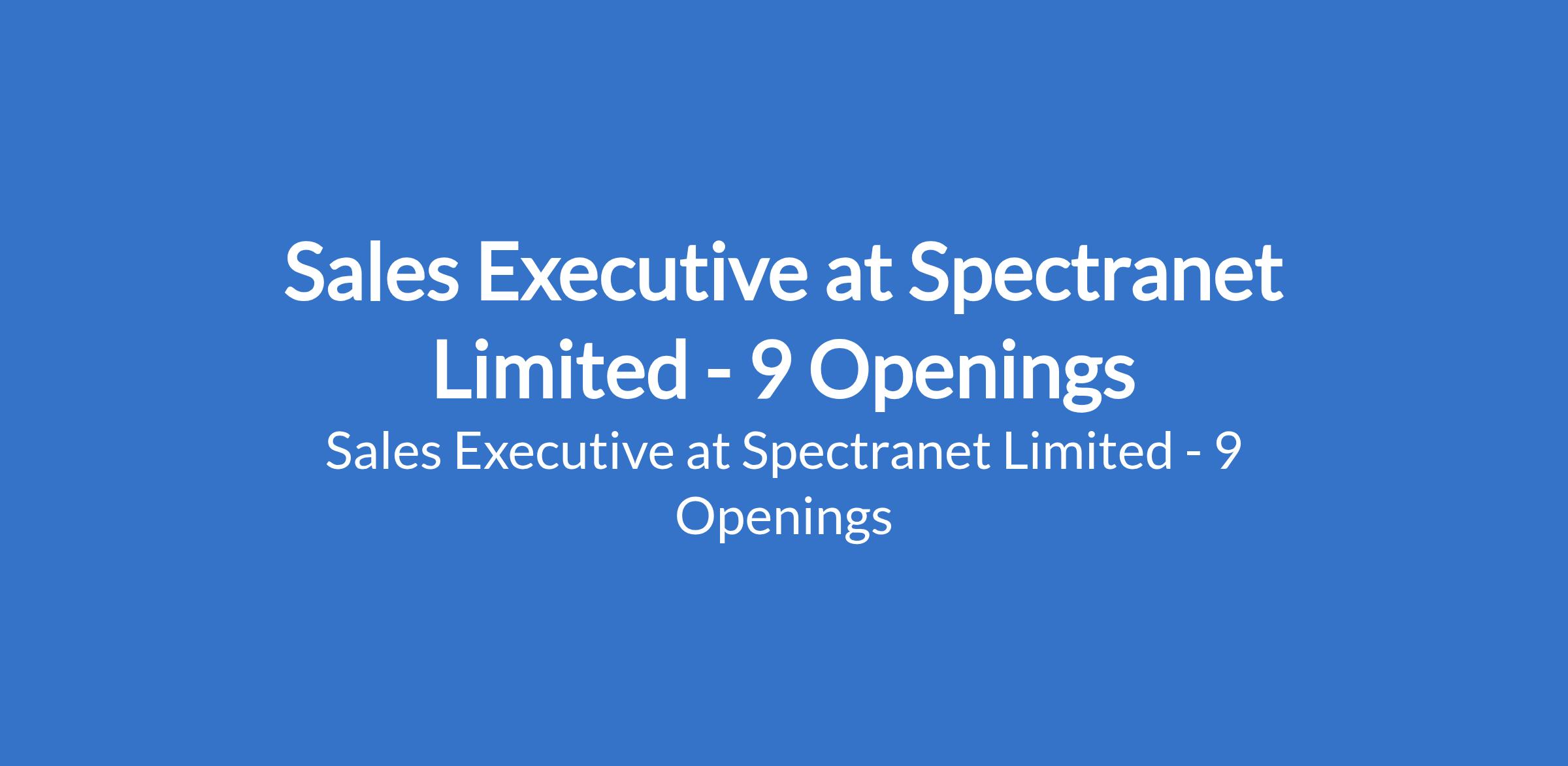 Spectranet Limited is recruiting to fill the position of: Sales Executive. The position is located in Gbagada,Victoria Island, Alaba, Lagos Island, Oniru, Lekki, Ikeja (Allen), Lasu (Iyanu Iba) and Igando - Lagos State. Salary: N70,000 monthly. Interested candidates should possess a minimum qualification of an OND or SSCE with relevant experience and must live within the job locations or environs.