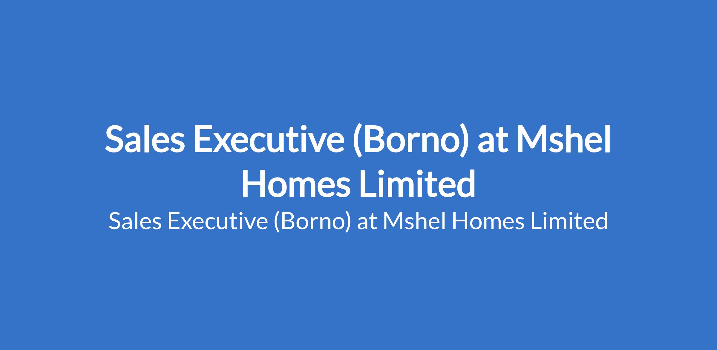 Mshel Homes Limited is recruiting to fill the position of: Sales Executive. The position is located in Maiduguri, Borno State. Salary: N100,000 - N150,000 monthly. Interested candidates should possess a Bachelors Degree in Business, Marketing, or a related field with 2-5 years of proven sales experience with a track record of meeting targets.