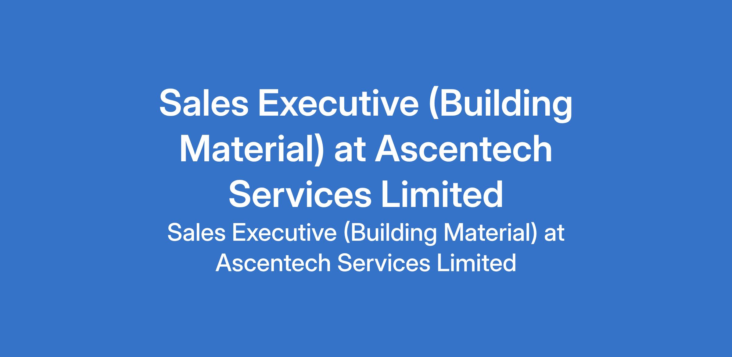 Ascentech Services Limited is recruiting to fill the position of: Sales Executive (Building Material). The position is located in Ilupeju, Lagos State. Salary: N250,000 - N400,000 / month. Interested candidates should possess a Bachelors Degree required with 3 5 years of experience selling building materials (adhesives, pipe fittings, silicon, sealants, etc.) in the dealer market.