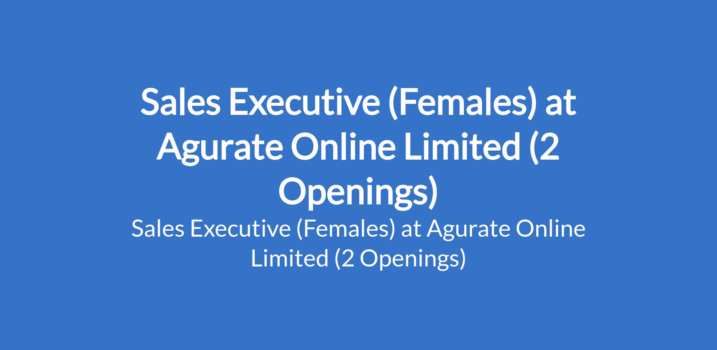 Agurate Online Limited is recruiting to fill the position of: Sales Executive (Females). The position is located in Lekki and Victoria Island - Lagos State. Salary: N150,000 monthly. Interested candidates should possess an OND/HND/B.Sc. Degree in Business, Marketing, or a related field preferred with a minimum of 2 years of cognate sales experience.