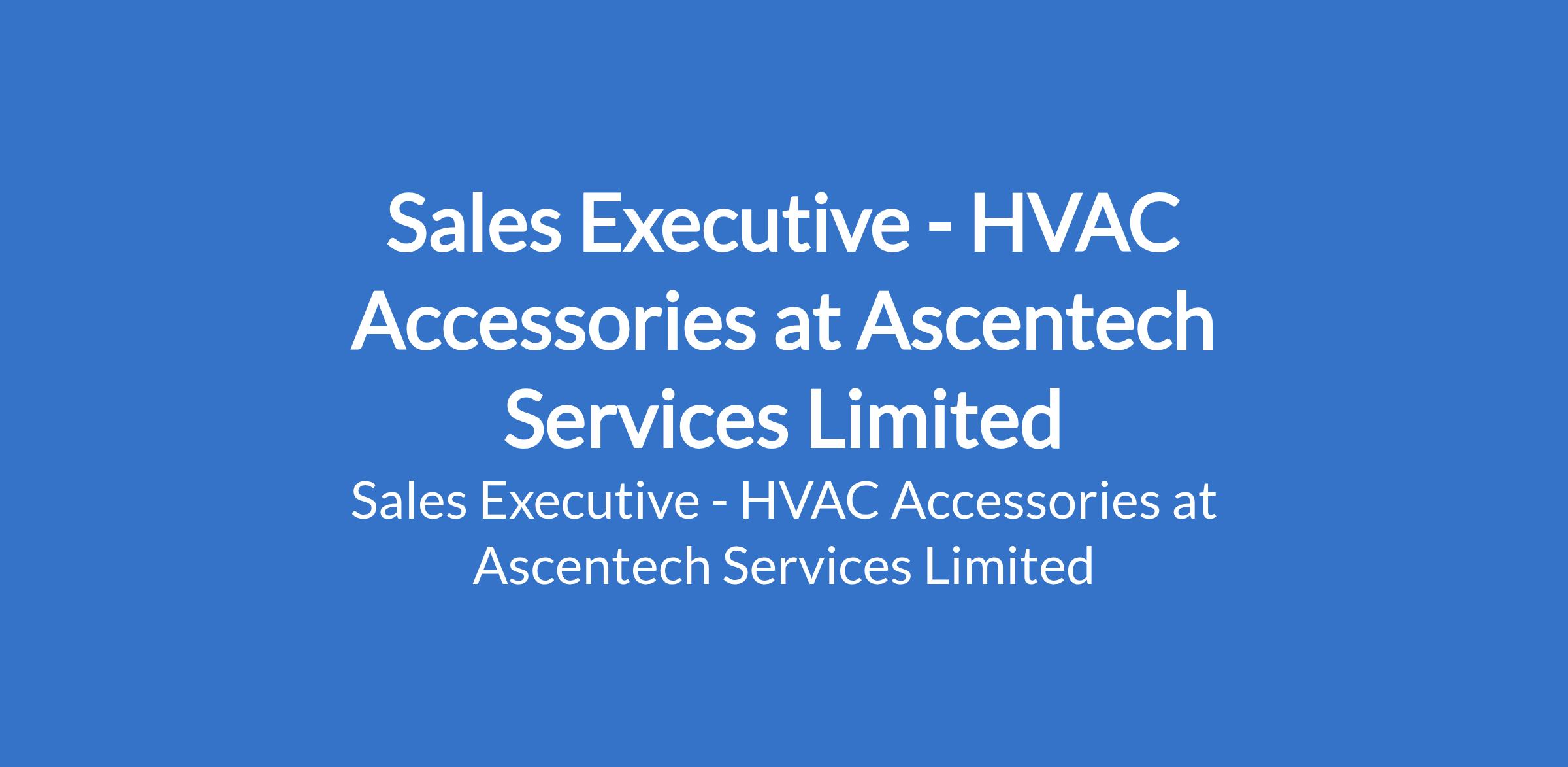 Ascentech Services Limited is recruiting to fill the position of: Sales Executive - HVAC Accessories. The position is located in Ilupeju, Lagos State. Salary: N250,000 N350,000 monthly. The ideal candidate must possess strong product knowledge and an existing network among HVAC contractors, installers, and project companies. Interested candidates should possess an OND / HND / Bachelors Degree in Business, Engineering, or related disciplines with 2 - 5 years direct sales experience in the HVAC accessories market.