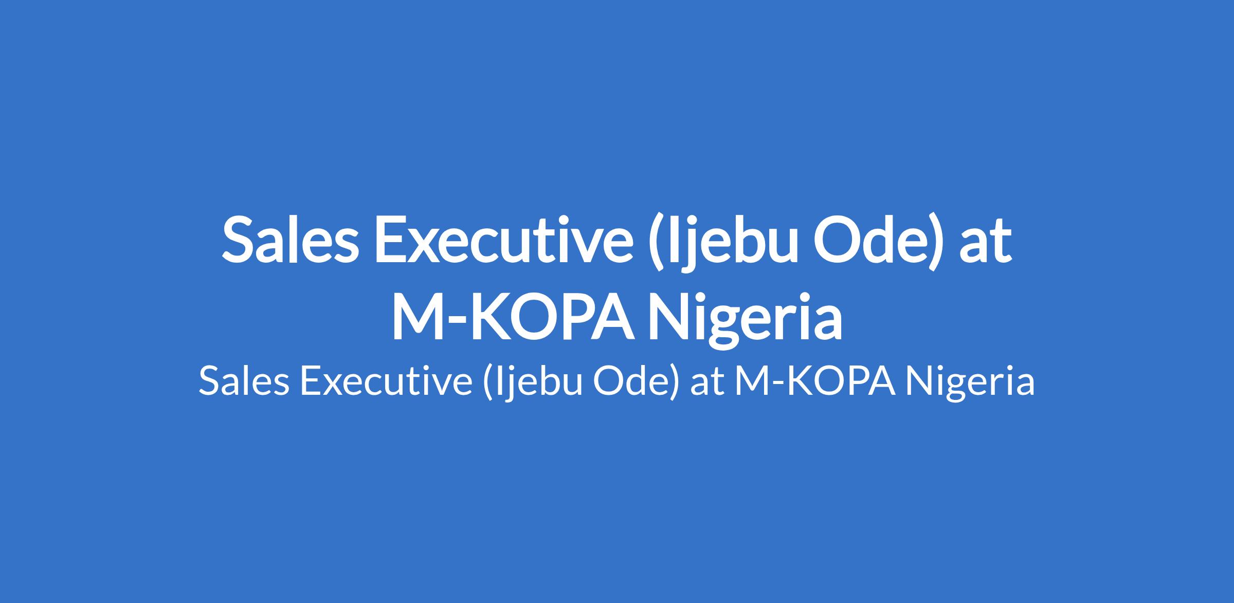 M-KOPA Nigeria is recruiting to fill the position of: Sales Executive. The position is located in Ijebu Ode, Ogun State. Interested candidates should possess relevant qualifications.