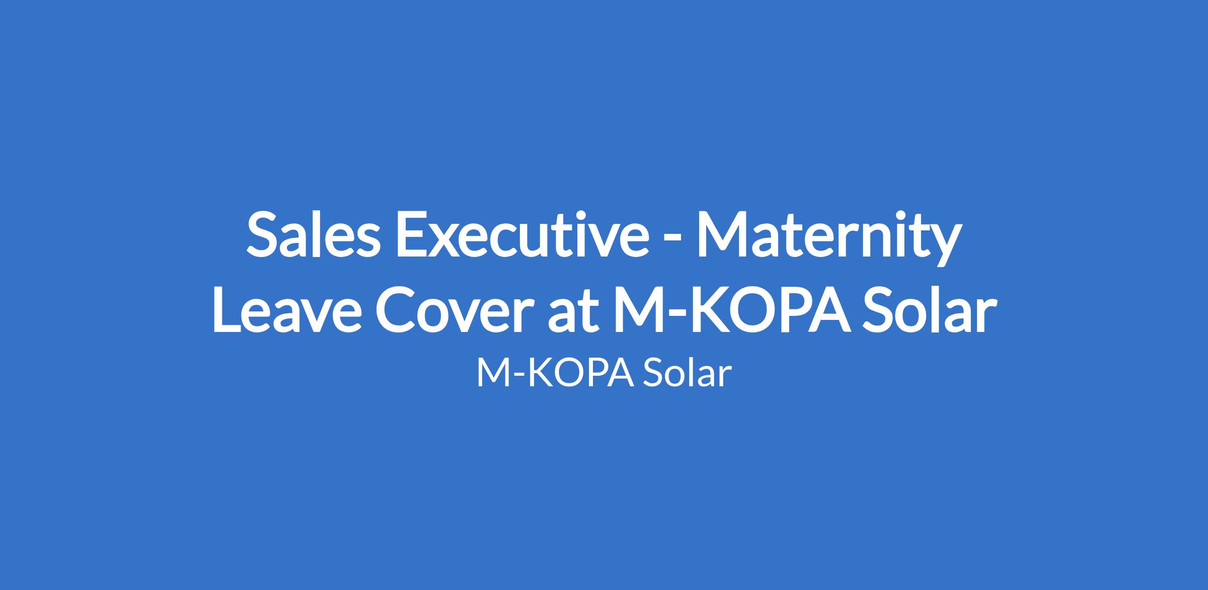 Sales Executive - Maternity Leave Cover at M-KOPA Solar