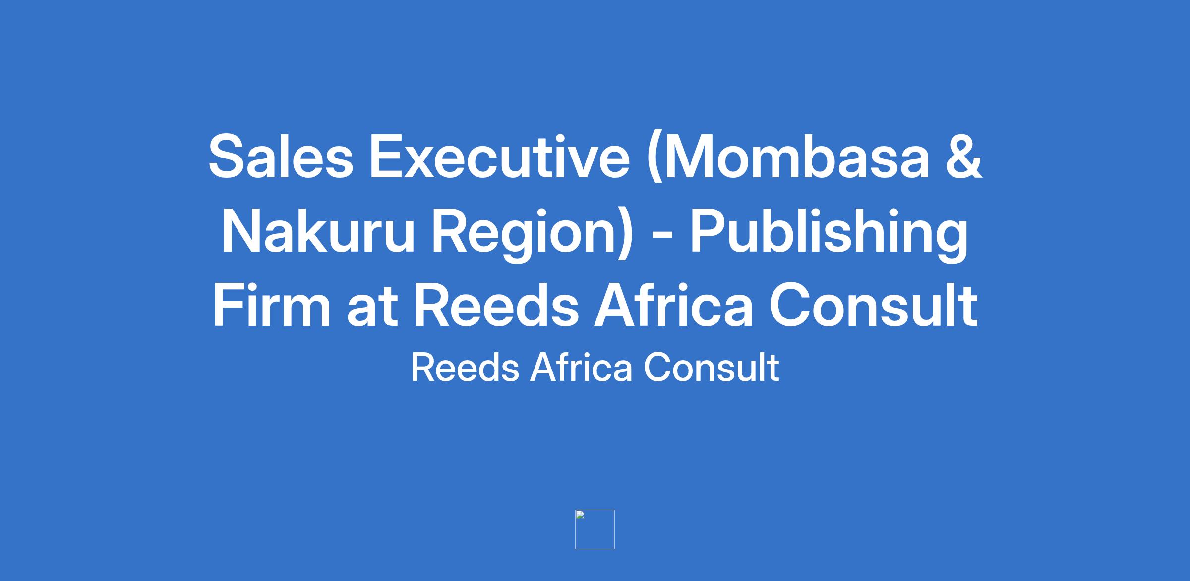 Sales Executive (Mombasa & Nakuru Region) - Publishing Firm at Reeds Africa Consult