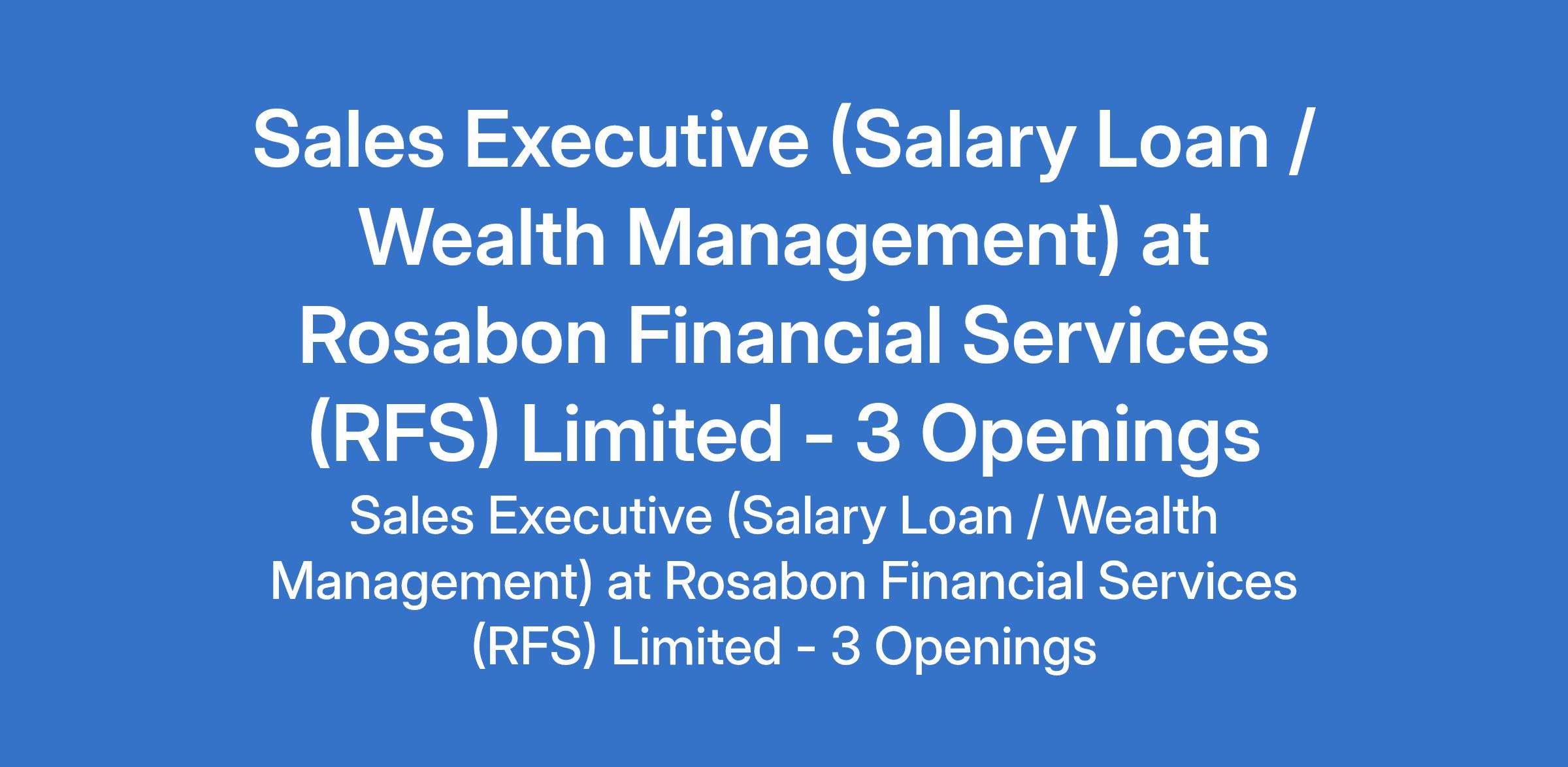 Rosabon Financial Services (RFS) Limited is recruiting to fill the position of: Sales Executive (Salary Loan / Wealth Management). The position is located in Lagos, Osun & Ibadan - Oyo States. Salary: N80,000 - N150,000 monthly. Interested candidates should possess a B.Sc Degree in Finance, Economics or a related field with proven working experience as a Loan Officer.