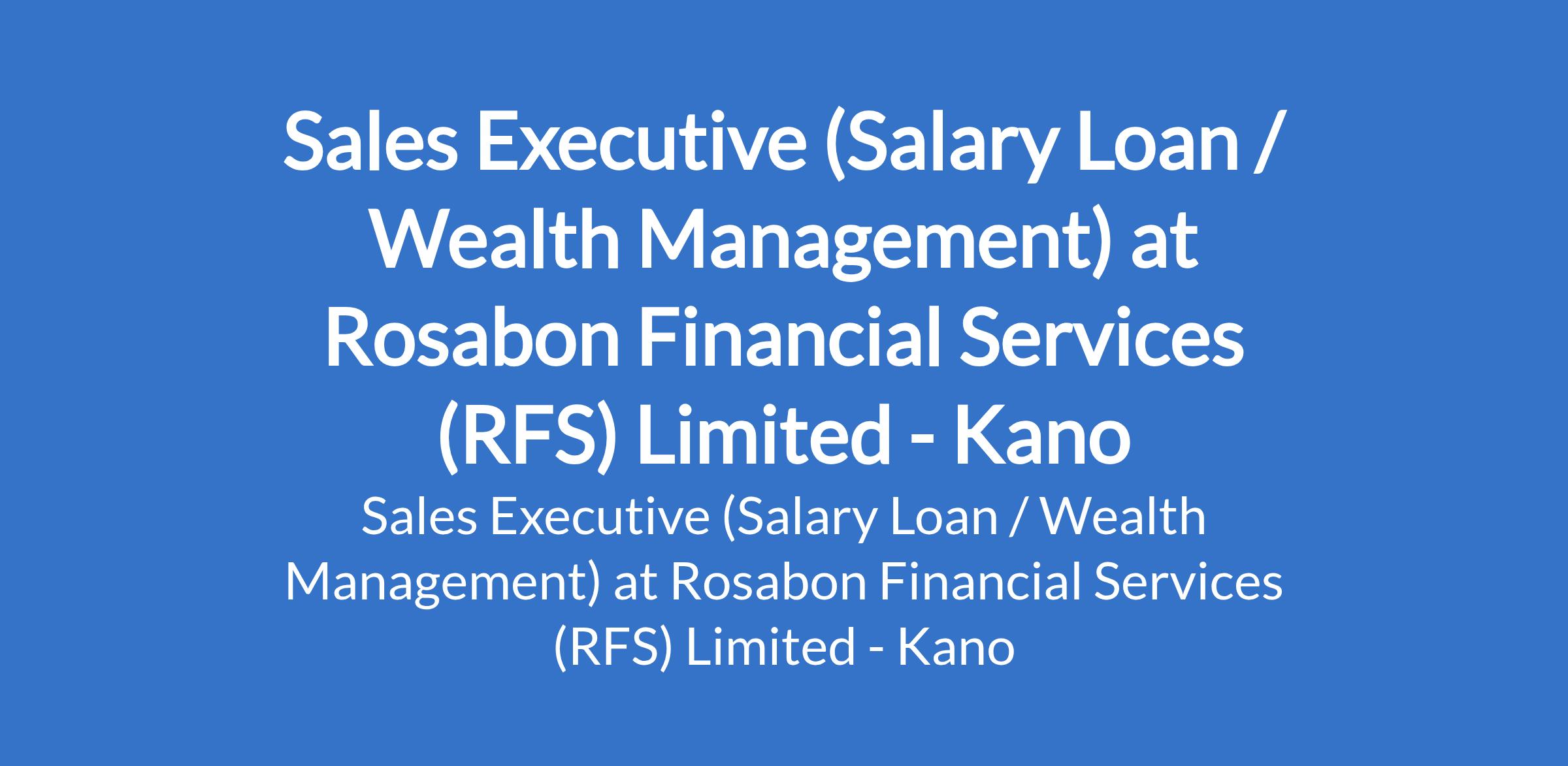 Rosabon Financial Services (RFS) Limited is recruiting to fill the position of: Sales Executive (Salary Loan / Wealth Management). The position is located in Kano State. Salary: N80,000 - N150,000 monthly. The ideal candidate will be tasked with the responsibility of selling various loan products. Interested candidates should possess a B.Sc Degree in Finance, Economics or a related field with proven working experience as a Loan Officer.