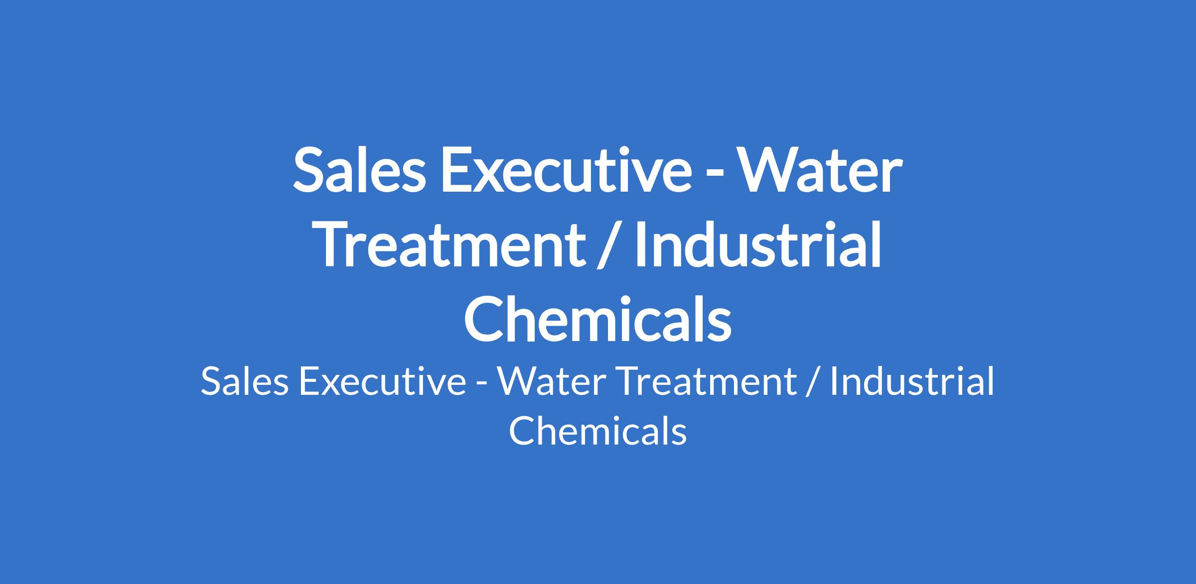 Job Title: Sales Executive - Water Treatment / Industrial Chemicals
