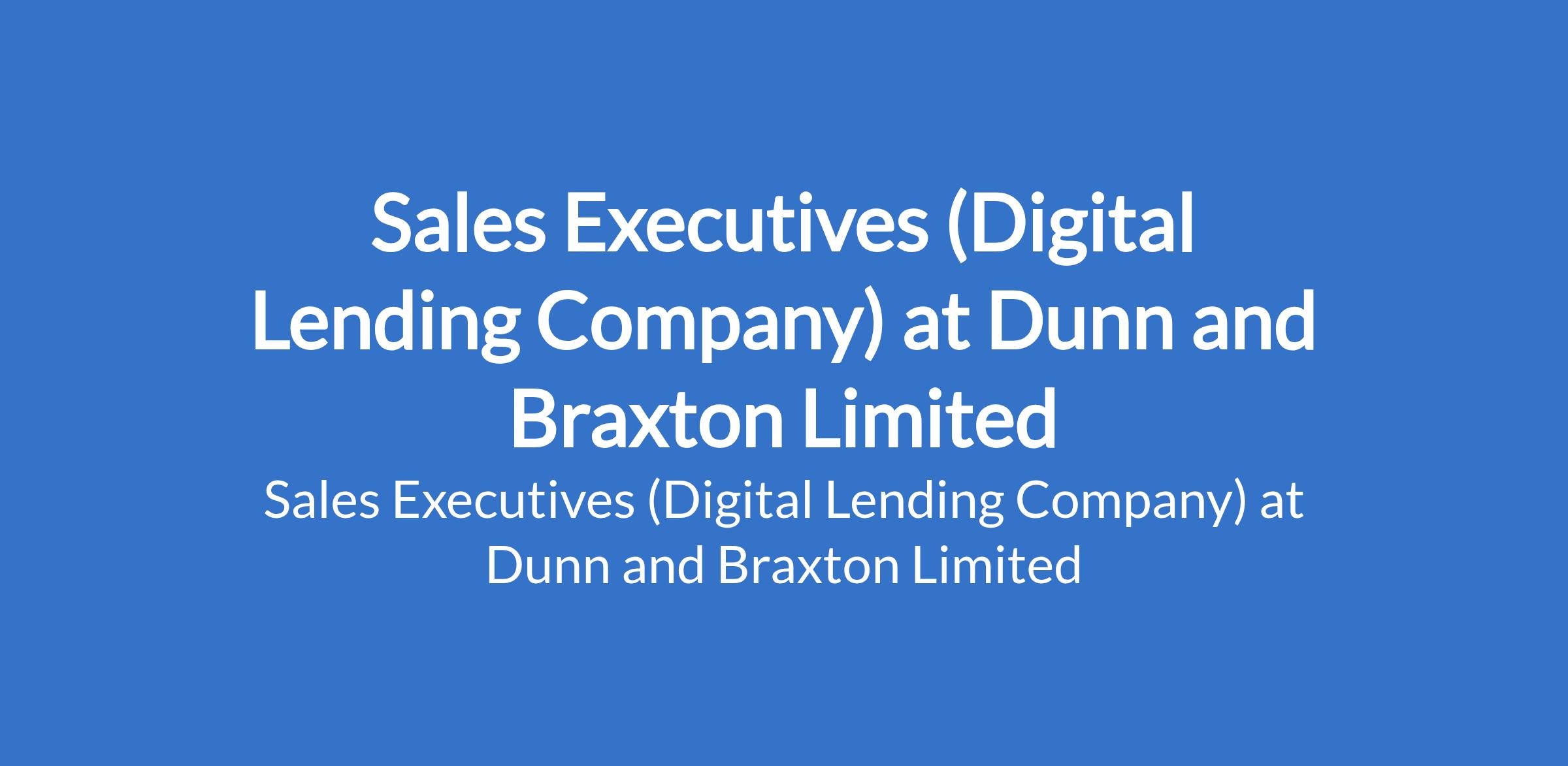 Dunn and Braxton Limited - Our client, a Digital Lending Company is recruiting to fill the position of: Sales Executive (Digital Lending Company). The position is located in Lagos Island, Lagos State. Salary: N150,000 monthly. Interested candidates should possess a Bachelor's Degree or HND with 1-3 years experience.