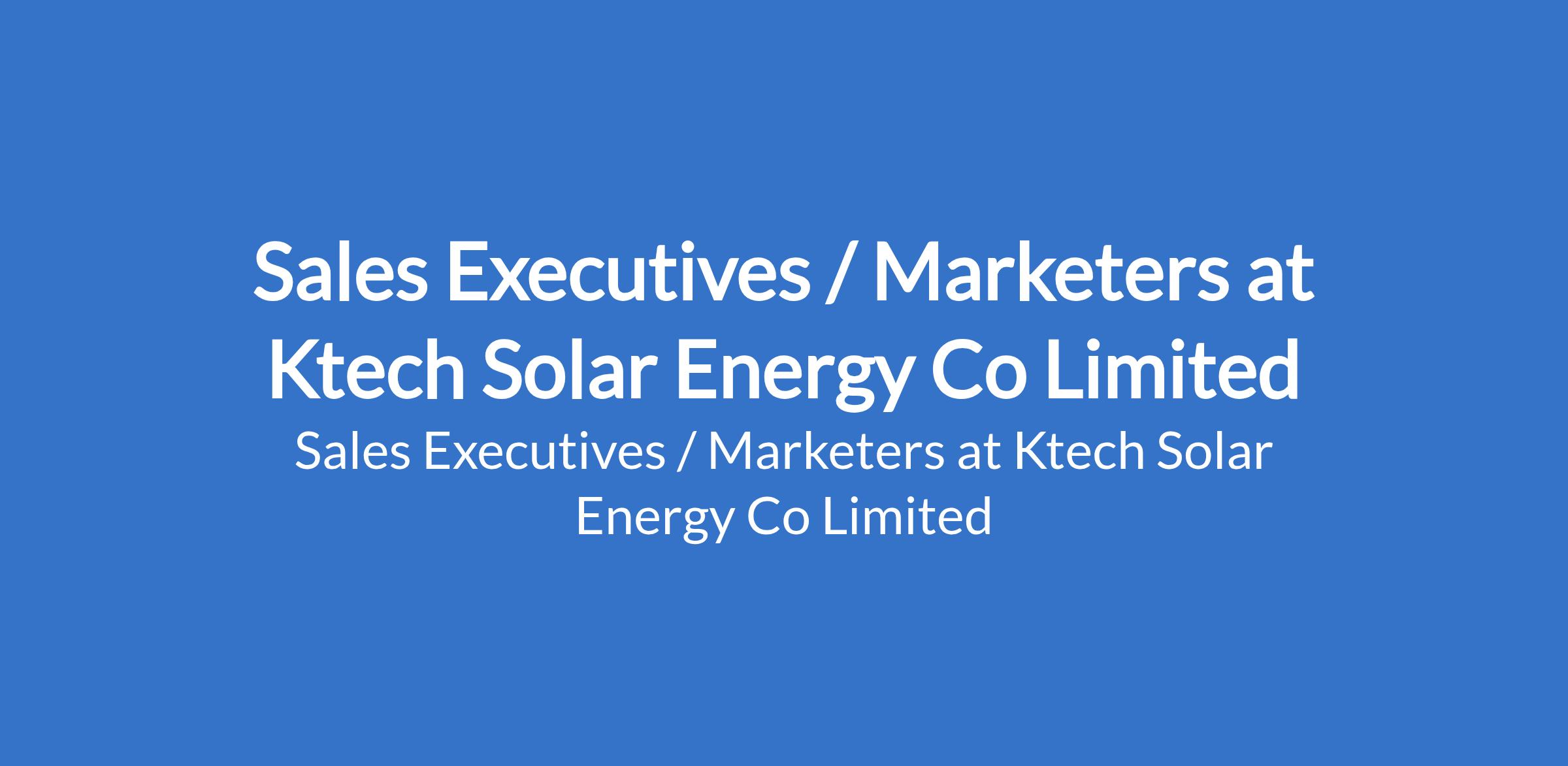 Ktech Solar Energy Co Limited is recruiting to fill the position of: Sales Executive / Marketer. The position is located in Ikeja, Lagos State. Salary: N85,000 - N250,000 / month. Interested candidates should possess a Bachelor's Degree in Marketing, Business, or related fields with 2+ years of sales or marketing experience in solar/construction.