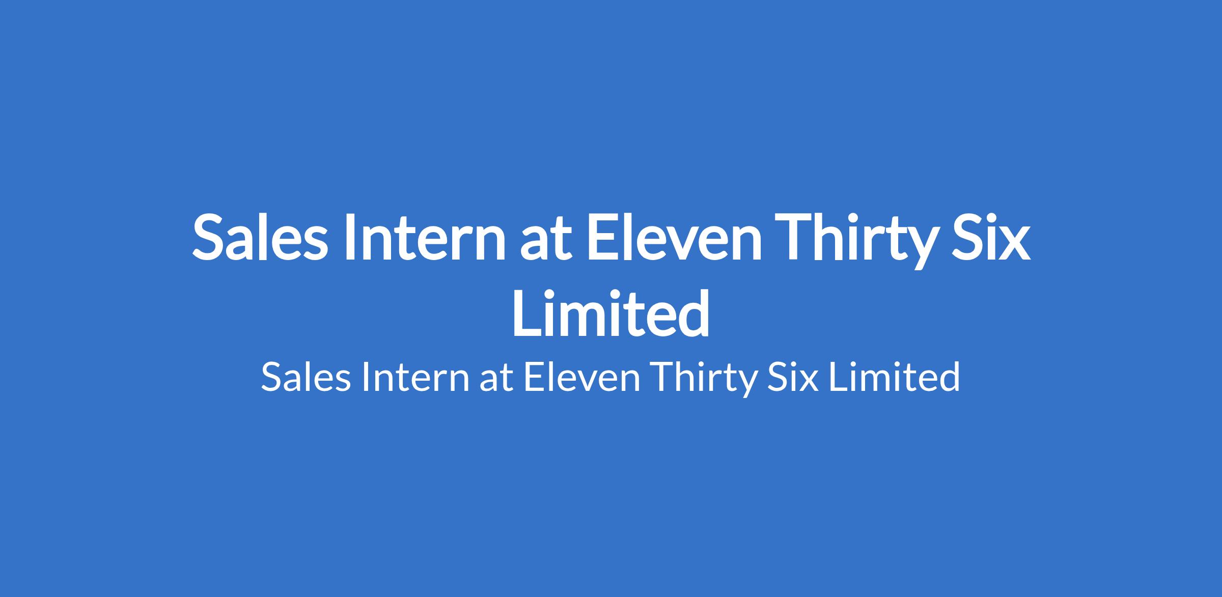 Eleven Thirty Six Limited is recruiting to fill the position of: Sales Intern. The position is located in Lagos State. The successful candidate will get hands-on experience in sales, contribute to driving revenue growth, and learn about our cutting-edge services. Interested candidates should possess a relevant qualification.