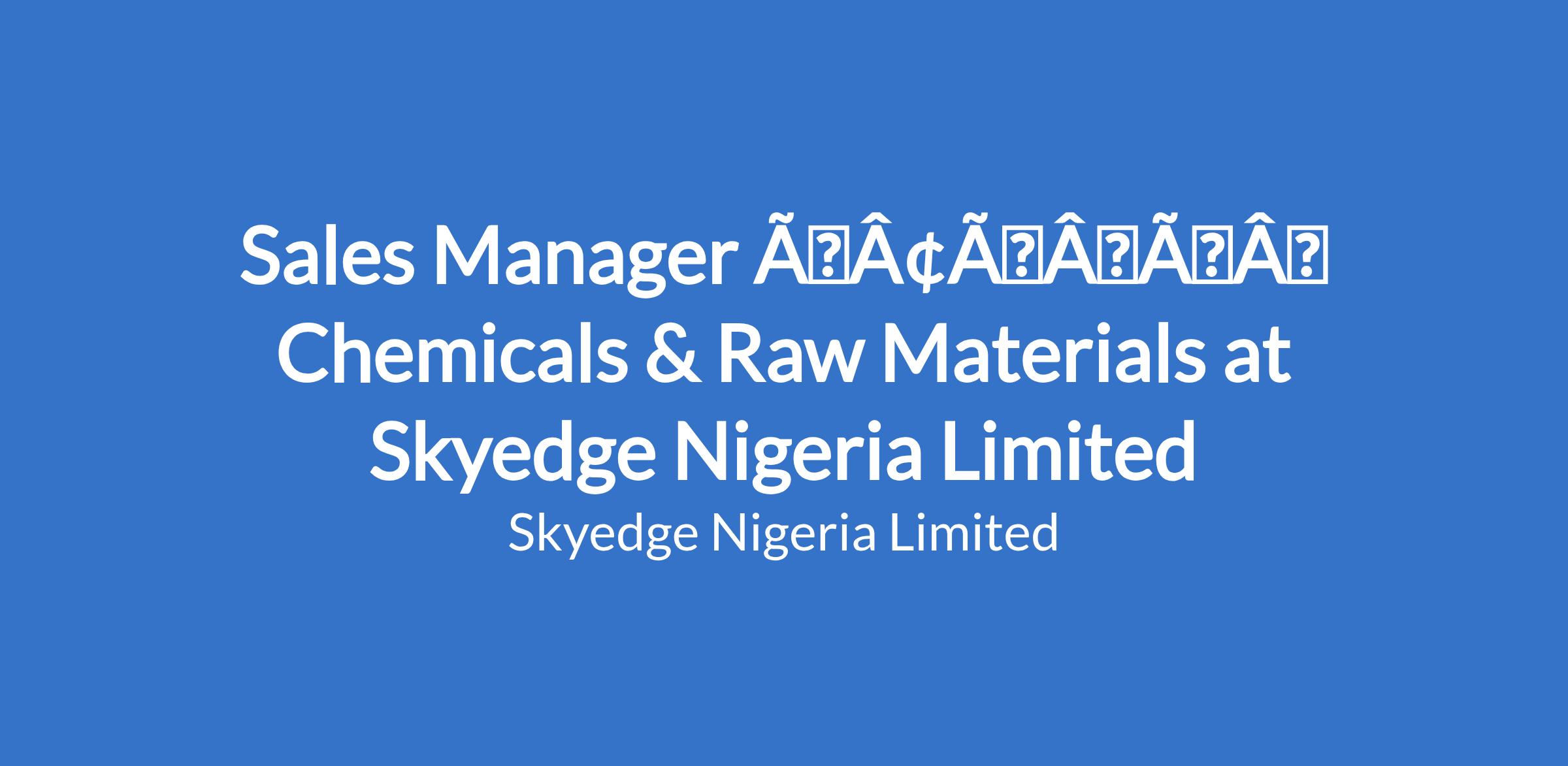 Sales Manager âÃÂàChemicals & Raw Materials at Skyedge Nigeria Limited