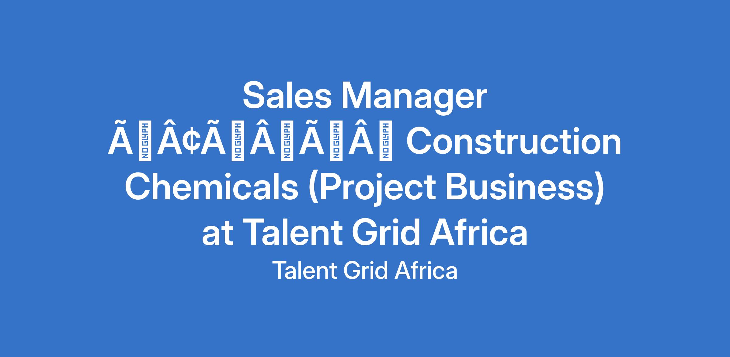 Sales Manager âÃÂàConstruction Chemicals (Project Business) at Talent Grid Africa