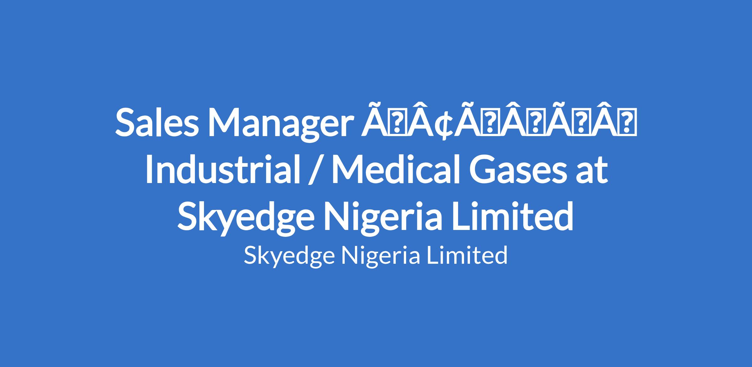 Sales Manager âÃÂàIndustrial / Medical Gases at Skyedge Nigeria Limited