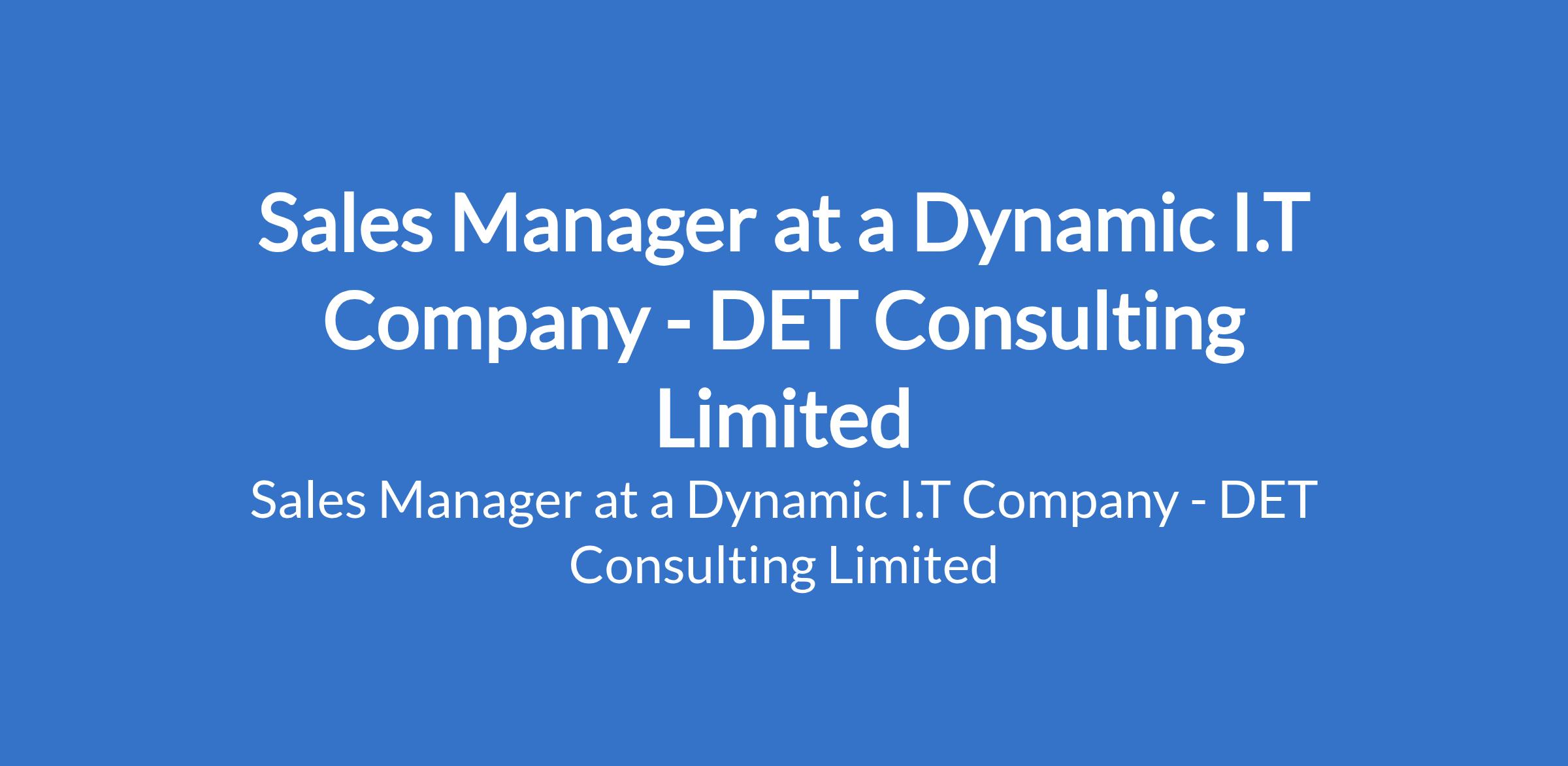 DET Consulting Limited - Our client, a dynamic I.T Company is recruiting to fill the position of: Sales Manager. The position is located in Victoria Island (V.I), Lagos State. The ideal candidate will be responsible for driving revenue growth, managing client relationships, and leading the sales team to achieve targets across technology products and services. Interested candidates should possess a Bachelors Degree in Business Administration, Marketing, Information Technology, or a related field with a minimum of 5 years of proven experience in sales, preferably within an I.T or technology-driven company.
