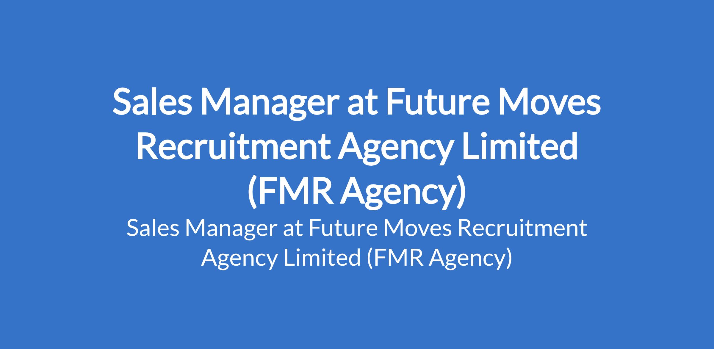 Future Moves Recruitment Agency Limited (FMR Agency) is recruiting to fill the position of: Sales Manager. The position is located in Ibadan, Oyo State. Salary: N200,000 per monthInterested candidates should possess a Bachelors Degree in Business, Marketing, or related field with 3+ years in FMCG / consumer goods sales, 2+ years managing a sales team.