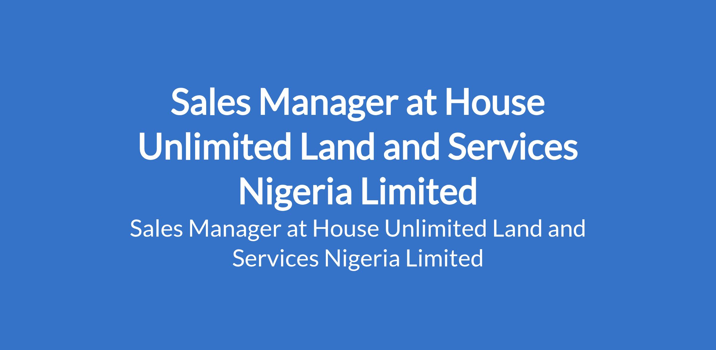 House Unlimited Land and Services Nigeria Limited is recruiting to fill the position of: Sales Manager. The position is located in Abuja (FCT). The ideal candidate will be responsible for managing sales operations, closing high-value deals, and building a high-performing team. Interested candidates should possess a Bachelors Degree in Business Administration, Marketing, or a related field; an MBA is an added advantage with 35 years in sales (real estate preferred).