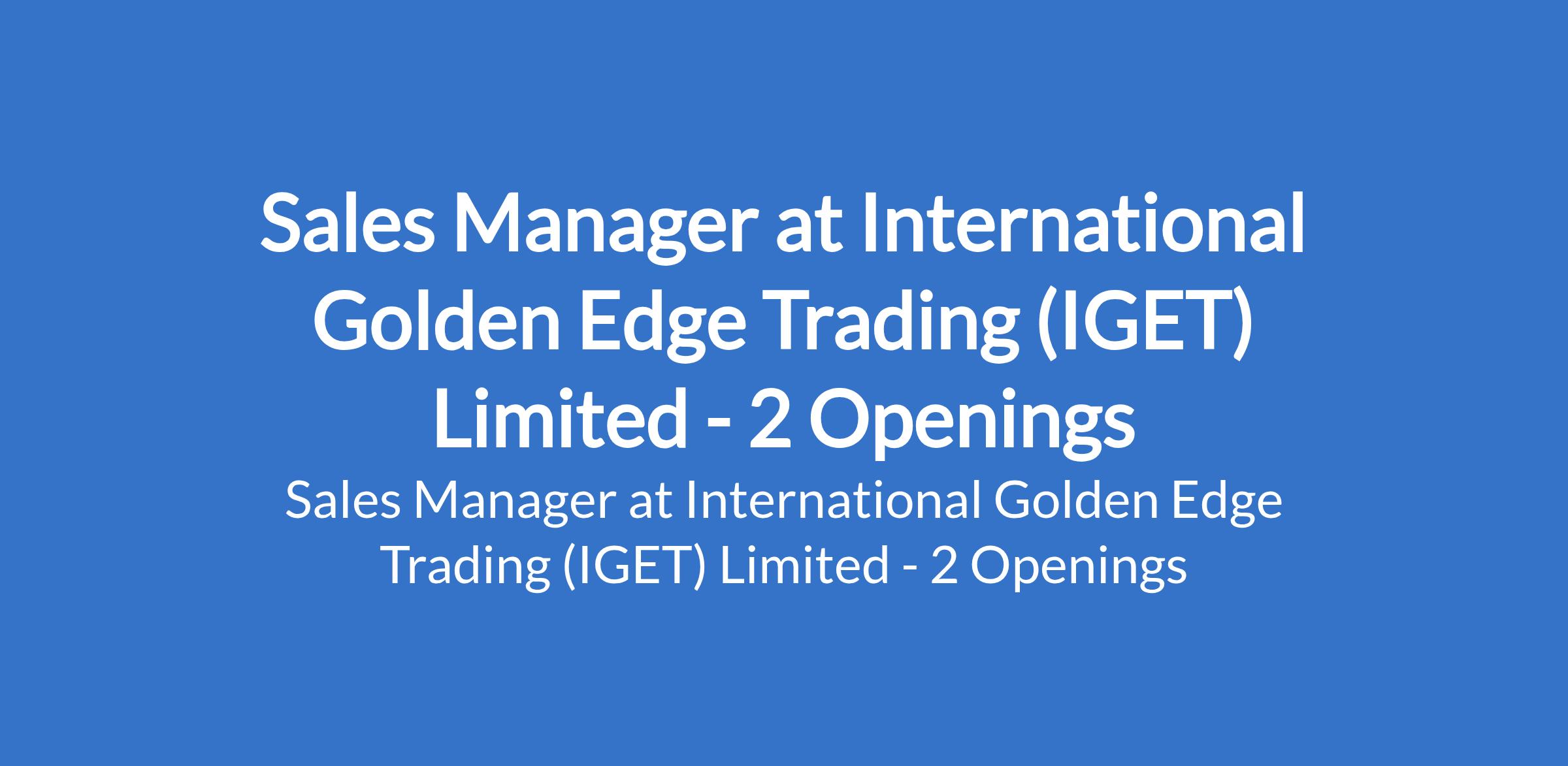 International Golden Edge Trading (IGET) Limited is recruiting to fill the position of: Sales Manager. The position is located in Abuja (FCT), & Lagos State. Interested candidates should possess relevant qualifications with 2 - 5 years of B2B sales experience.
