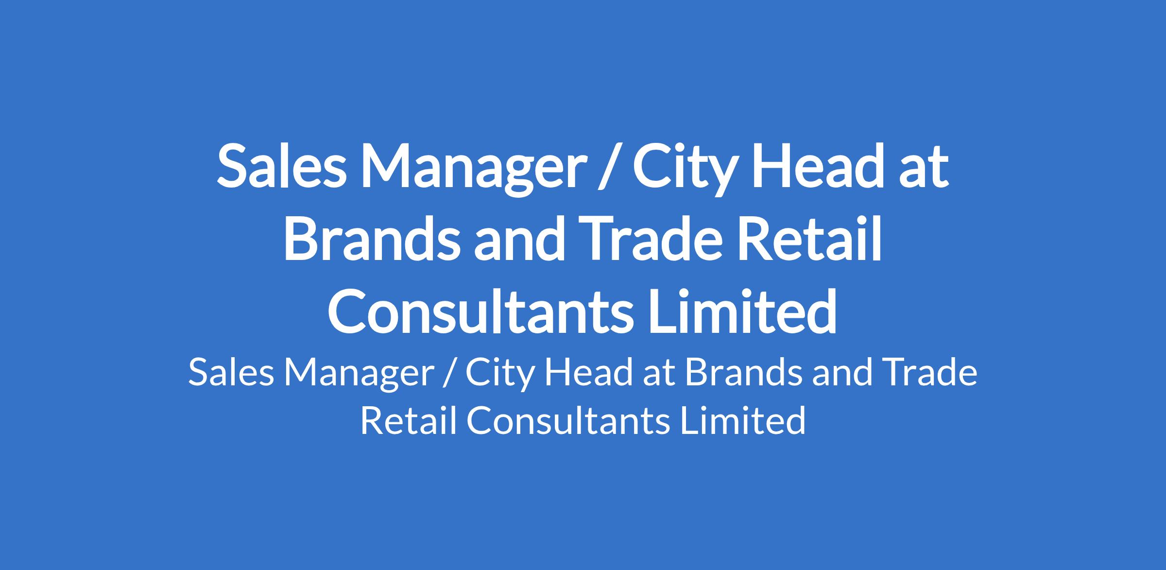 Brands and Trade Retail Consultants Limited is recruiting to fill the position of: Sales Manager / City Head. The position is located in Oke Arin, Lagos State. Salary: N300,000 - per month. Interested candidates should possess a Bachelors Degree in Business, Marketing, or related fields with 35 years sales management experience and must be living around Oyinbo, Yaba, Costain and Obalende.