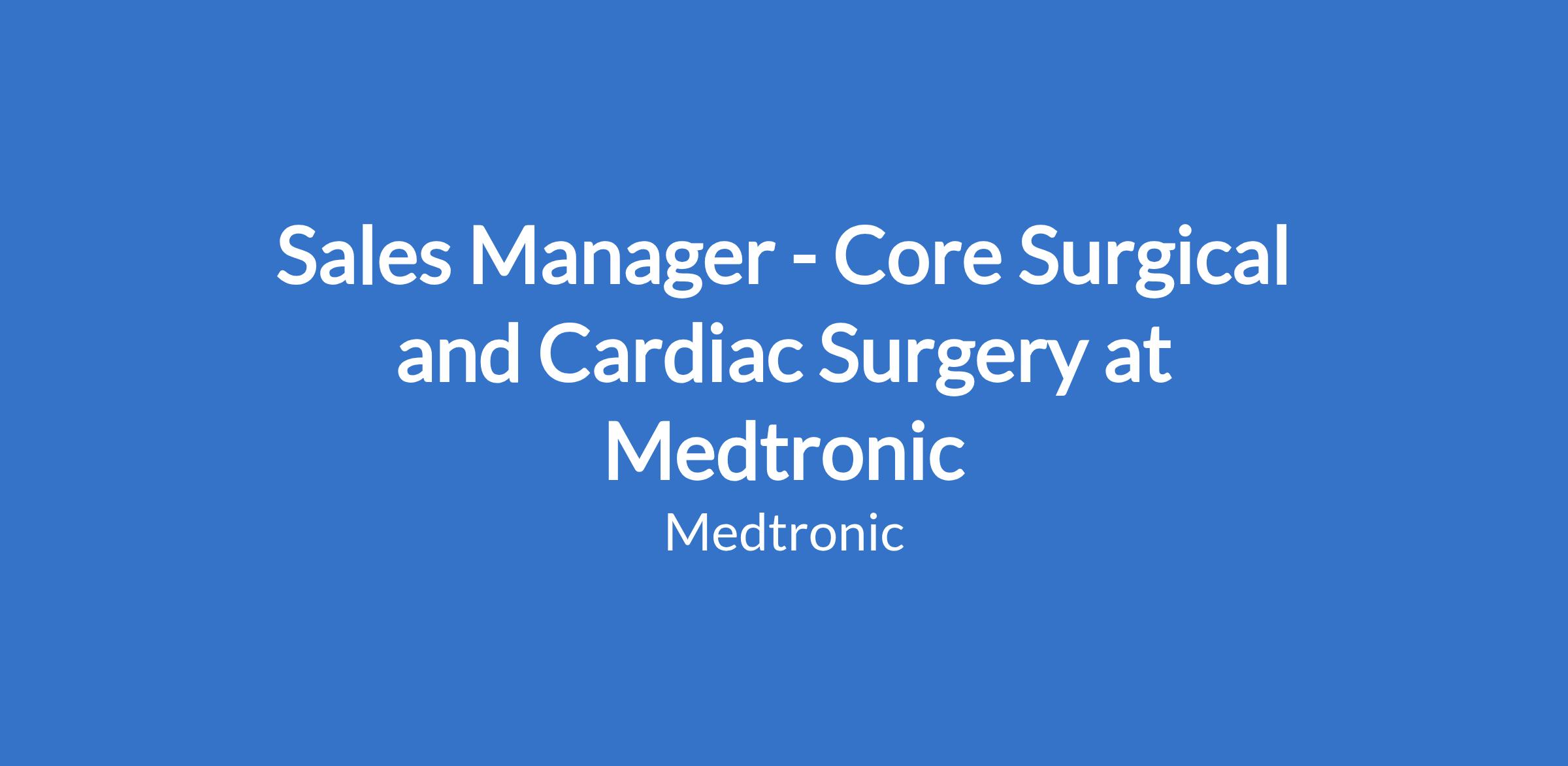 Sales Manager - Core Surgical and Cardiac Surgery at Medtronic