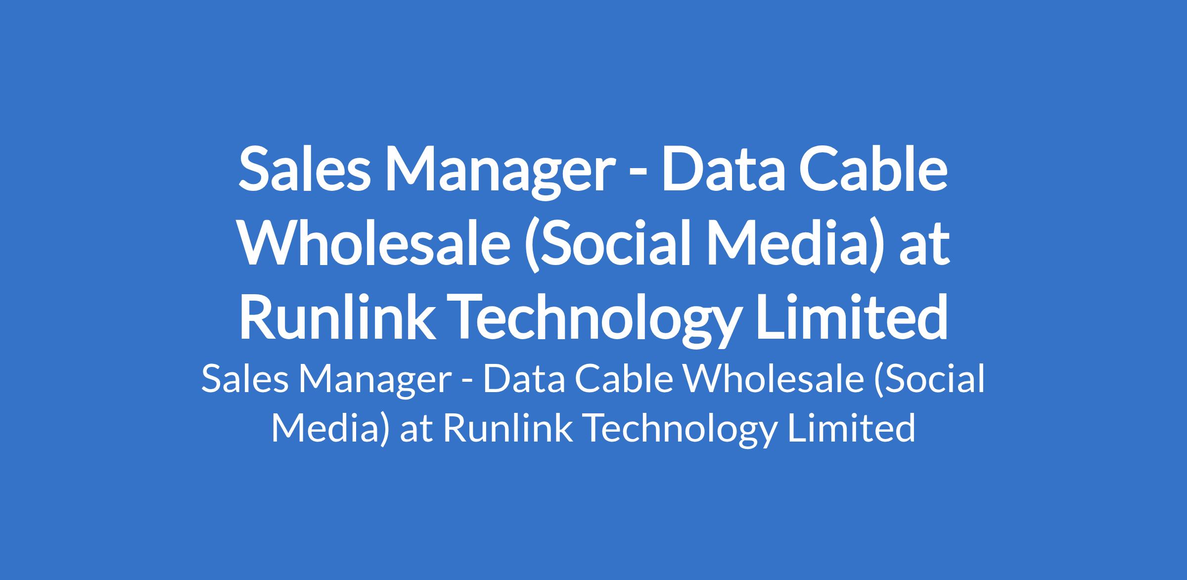 Runlink Technology Limited is recruiting to fill the position of: Sales Manager - Data Cable Wholesale (Social Media). The position is located in Lagos State. Salary: N100,000 - N150,000 monthly. Interested candidates should possess relevant qualifications.